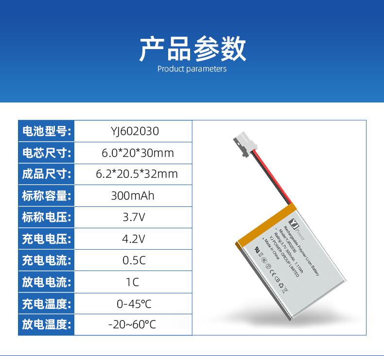 Batería de Polímero de Litio 602030 Certificada CCC 300mAh Masajeador Instrumento de Belleza Batería de Litio Recargable