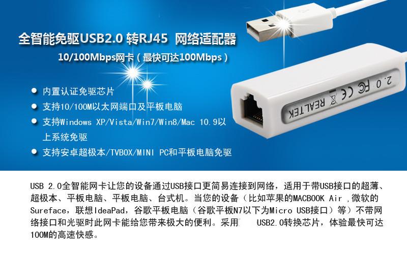 Tarjeta de red USB 2.0 100M sin controlador, plug and play