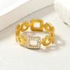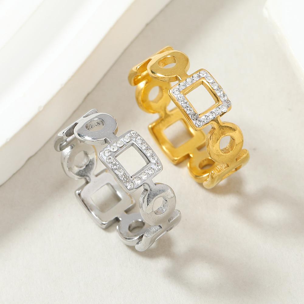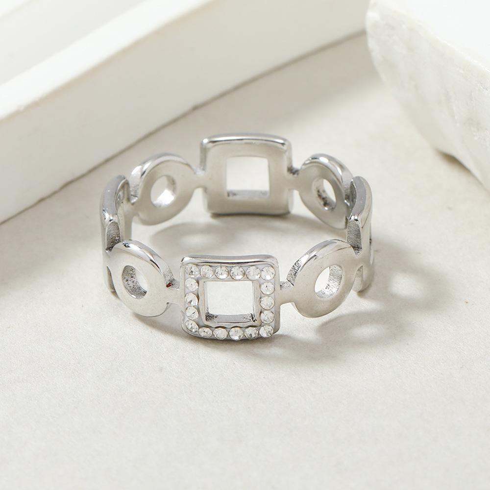 Joyería de acero inoxidable transfronteriza lujo ligero de alta gama hueco cuadrado redondo diamante anillo de acero de titanio anillo de moda fabricante