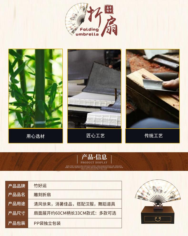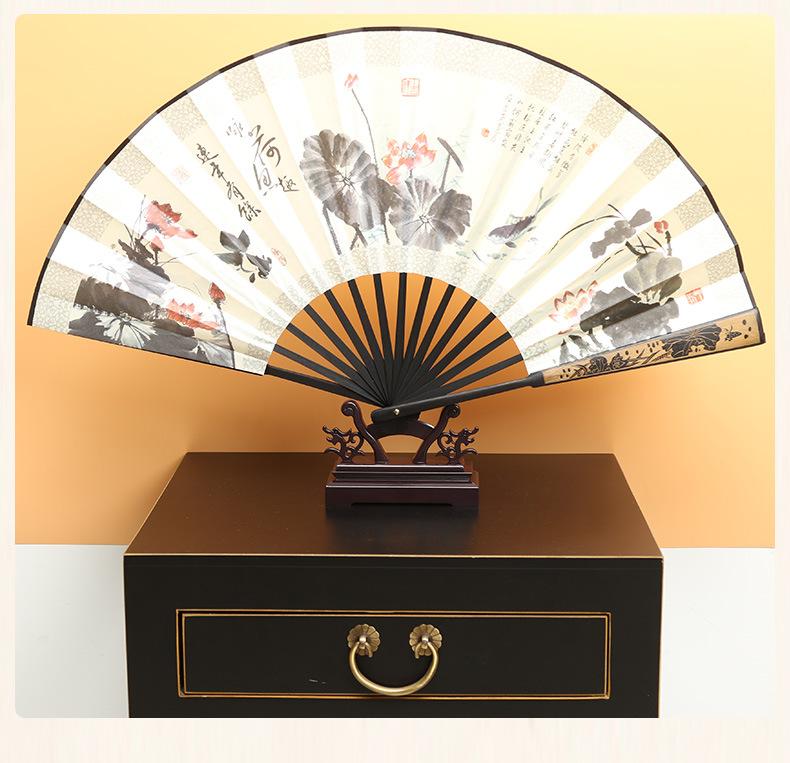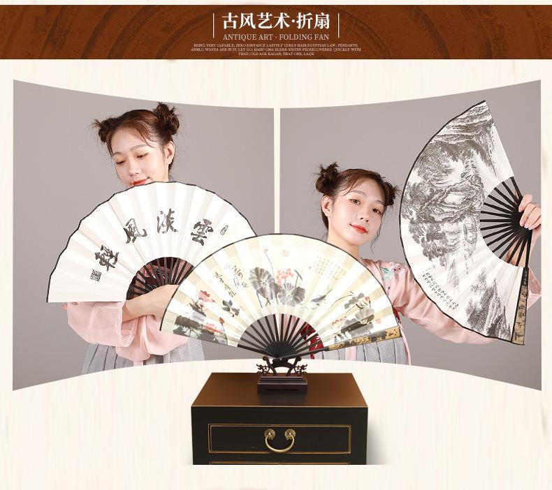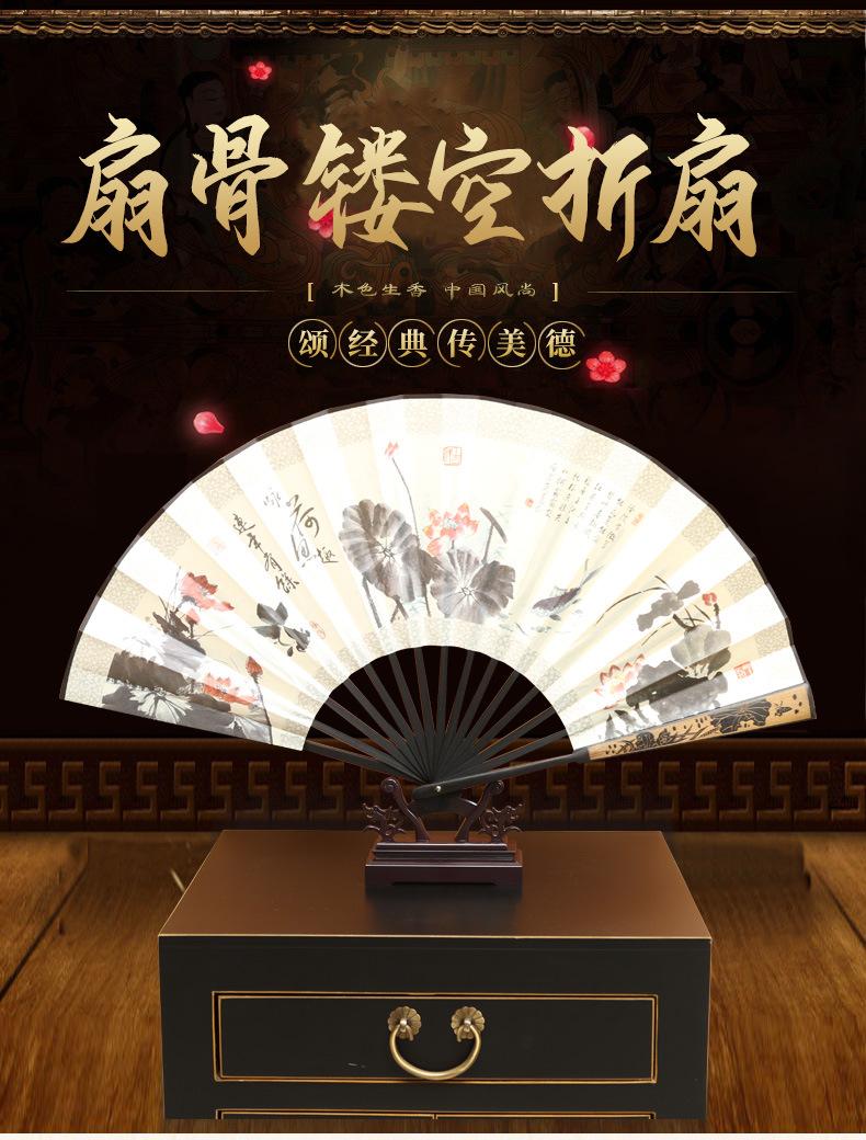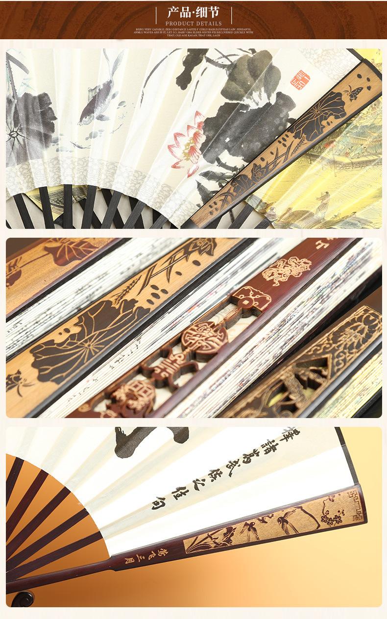 Abanico de estilo antiguo, venta al por mayor, regalo, abanico con impresión de logotipo tallado, tela de seda, abanico plegable de estilo antiguo, artesanías de bambú, abanico al por mayor