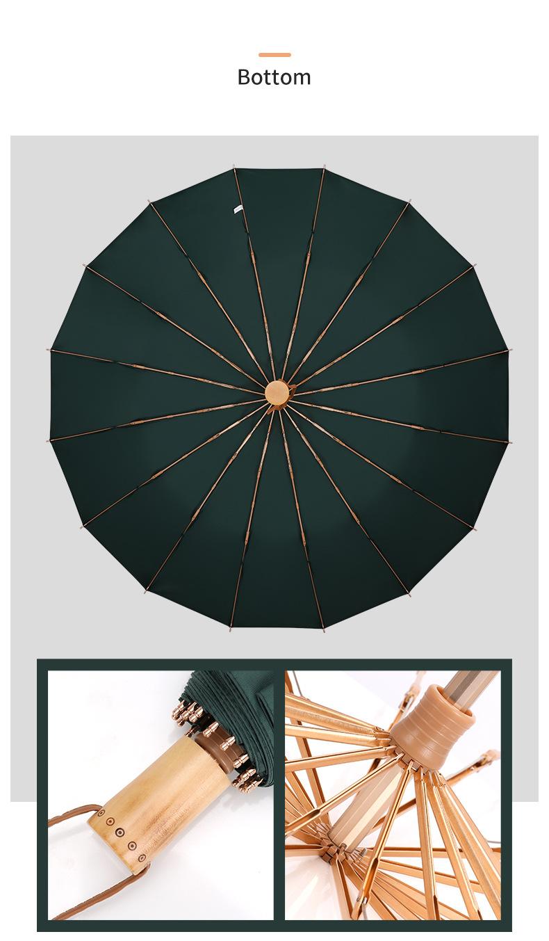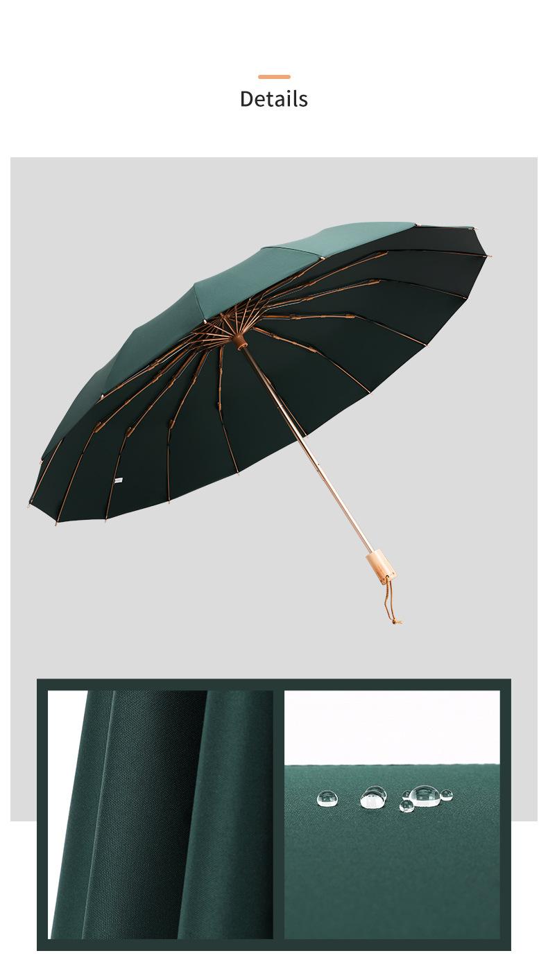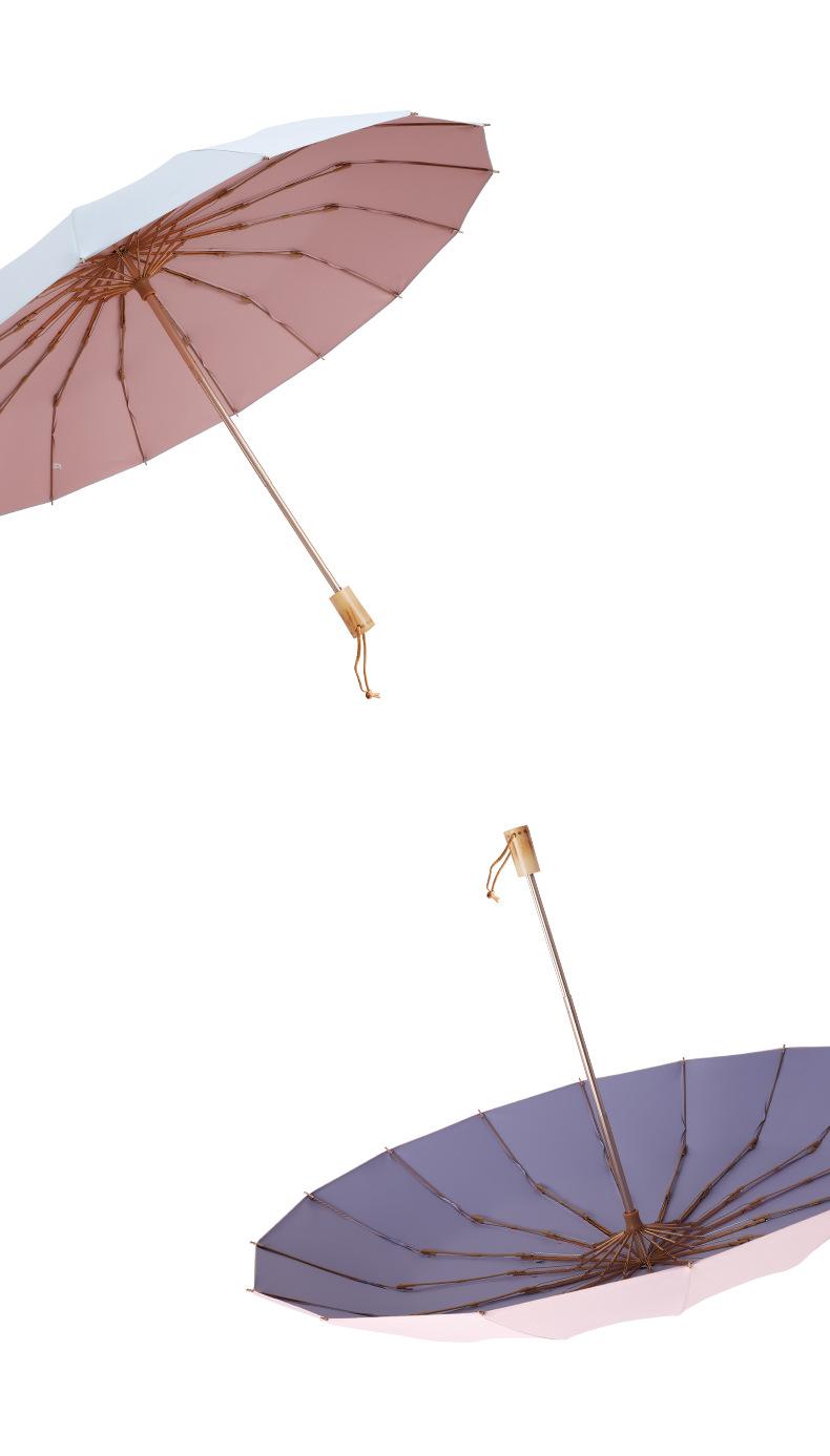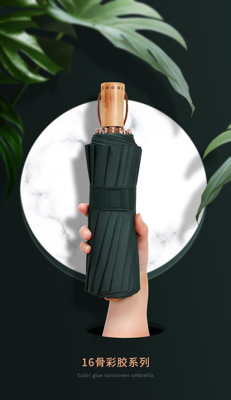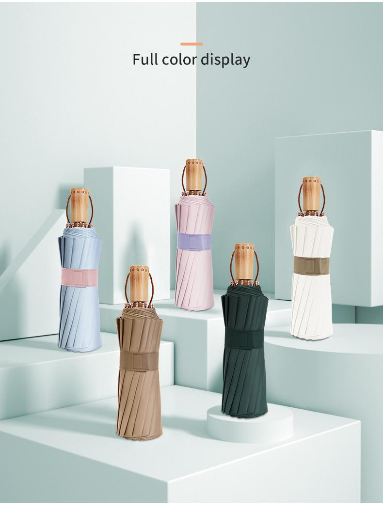 Nueva sombrilla de 16 varillas, color liso, pequeña, fresca, con pegamento, sombrilla de tres pliegues, mango de madera, regalo publicitario, sombrilla personalizable.
