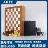 Frasco de Acero Inoxidable Frasco Ruso de Acero Inoxidable Portátil para Exterior Acero Inoxidable Caja de Madera Frasco Ajedrez