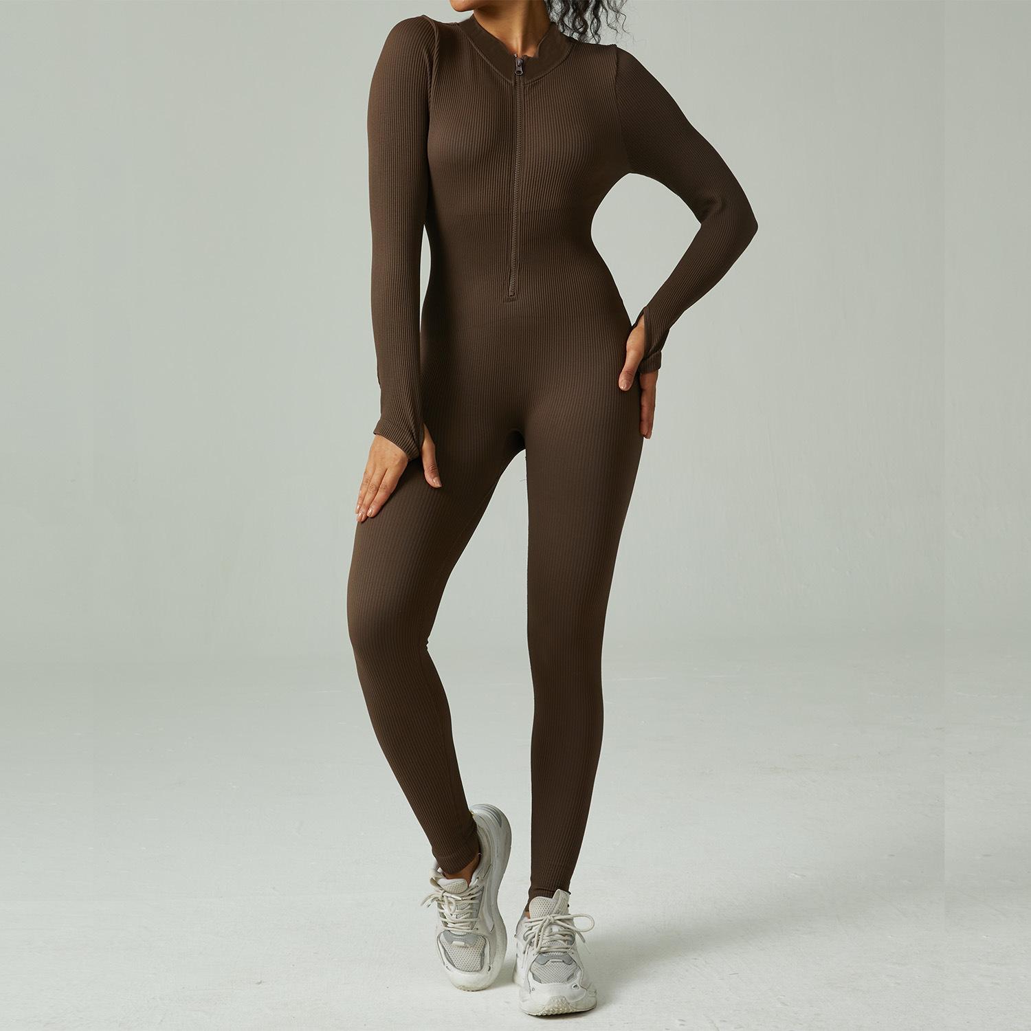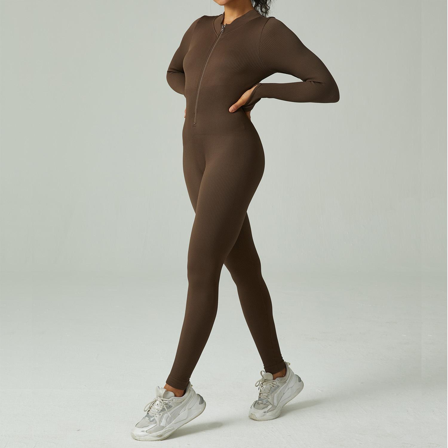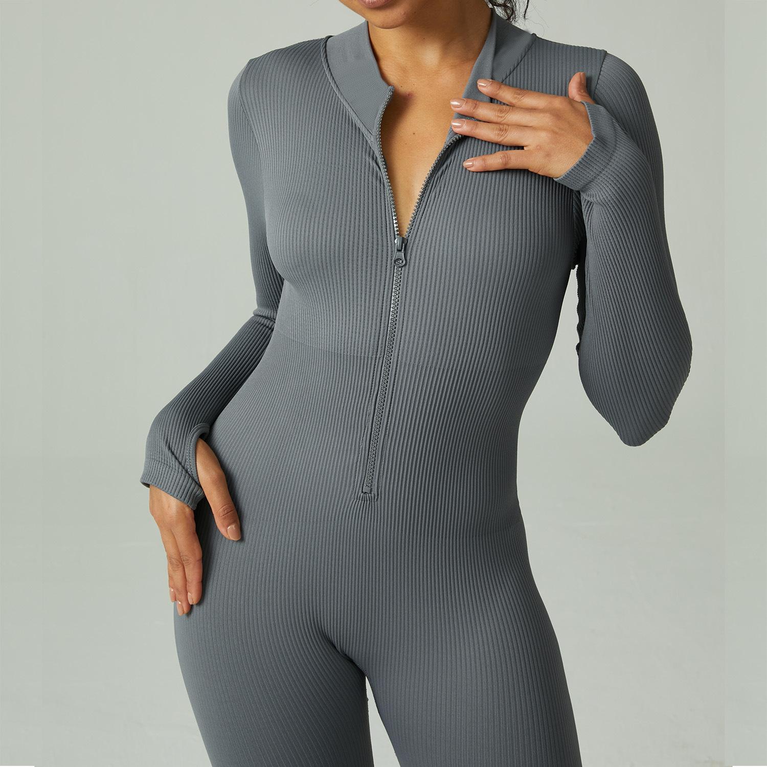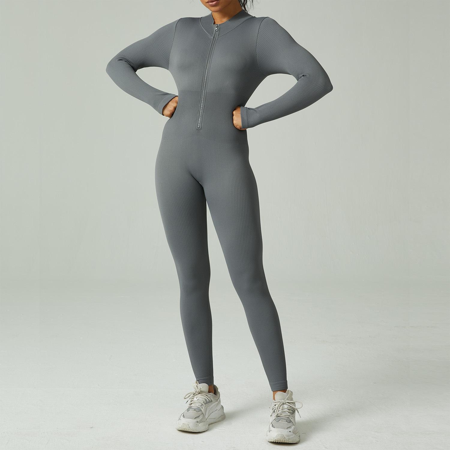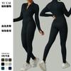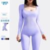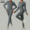 Mono de yoga deportivo sin costuras transfronterizo europeo y americano, mono de fitness deportivo, pantalones ajustados de manga larga para yoga para mujer
