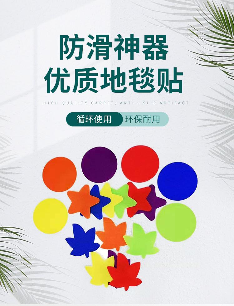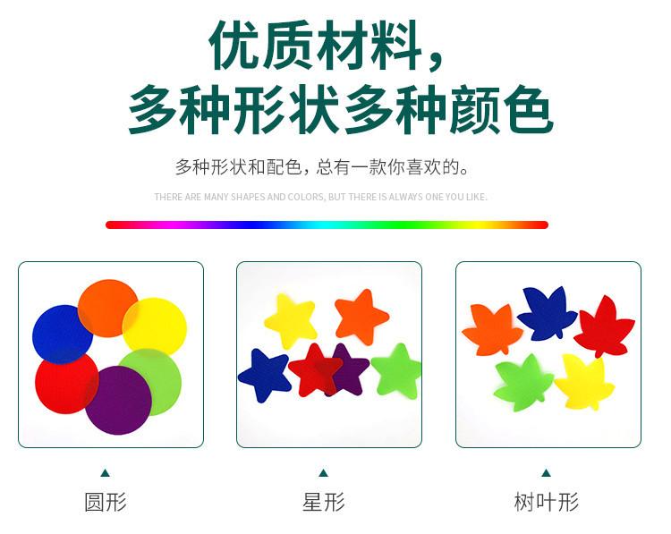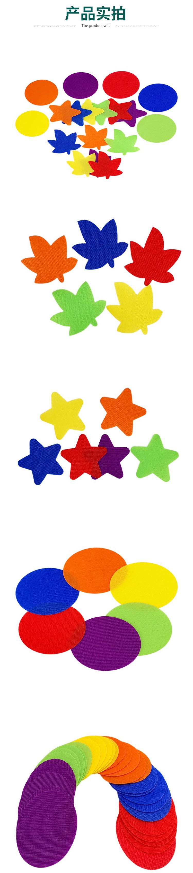 1. Las pegatinas de alfombra coloridas se utilizan para la identificación de niños y el entrenamiento y posicionamiento de niños con rompecabezas digitales. Tienen varias formas y se pueden personalizar en diferentes formas y colores.