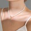 | Collar de perlas de agua dulce galvanizadas al vacío, versión coreana, diseño de moda de perlas Love Ins para mujer, cadena de clavícula para mujer |