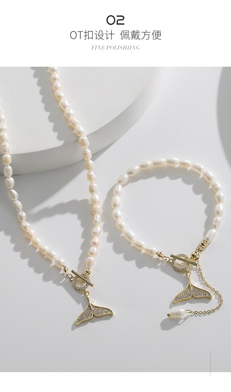| Collar de perlas naturales de agua dulce de estilo coreano, pulsera para mujer, diseño personalizado, cadena de suéter de perlas, cadena de clavícula de perlas de grano de arroz para mujer |