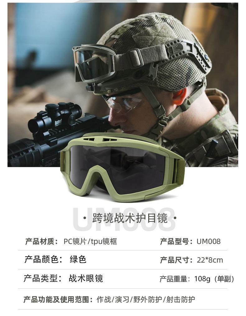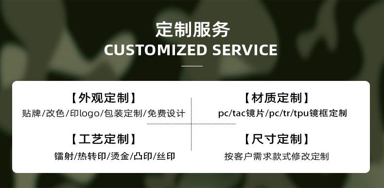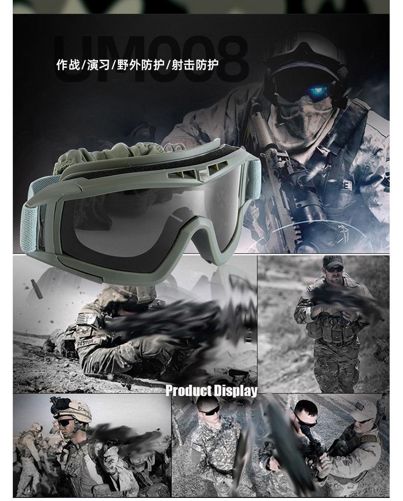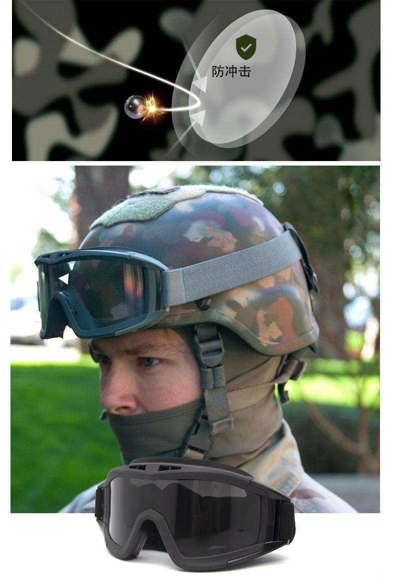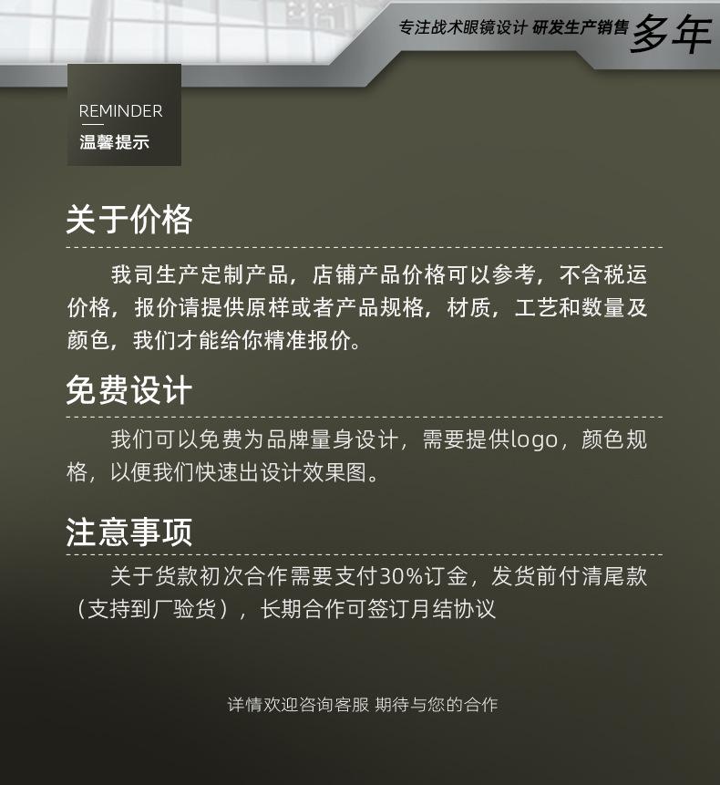 Punto de venta del producto: Diseño versión fan militar, simple y práctico; lente hecha de material PC, 2.5mm de espesor, alta transmitancia de luz y resistencia al impacto;