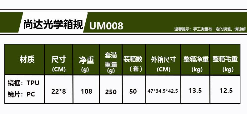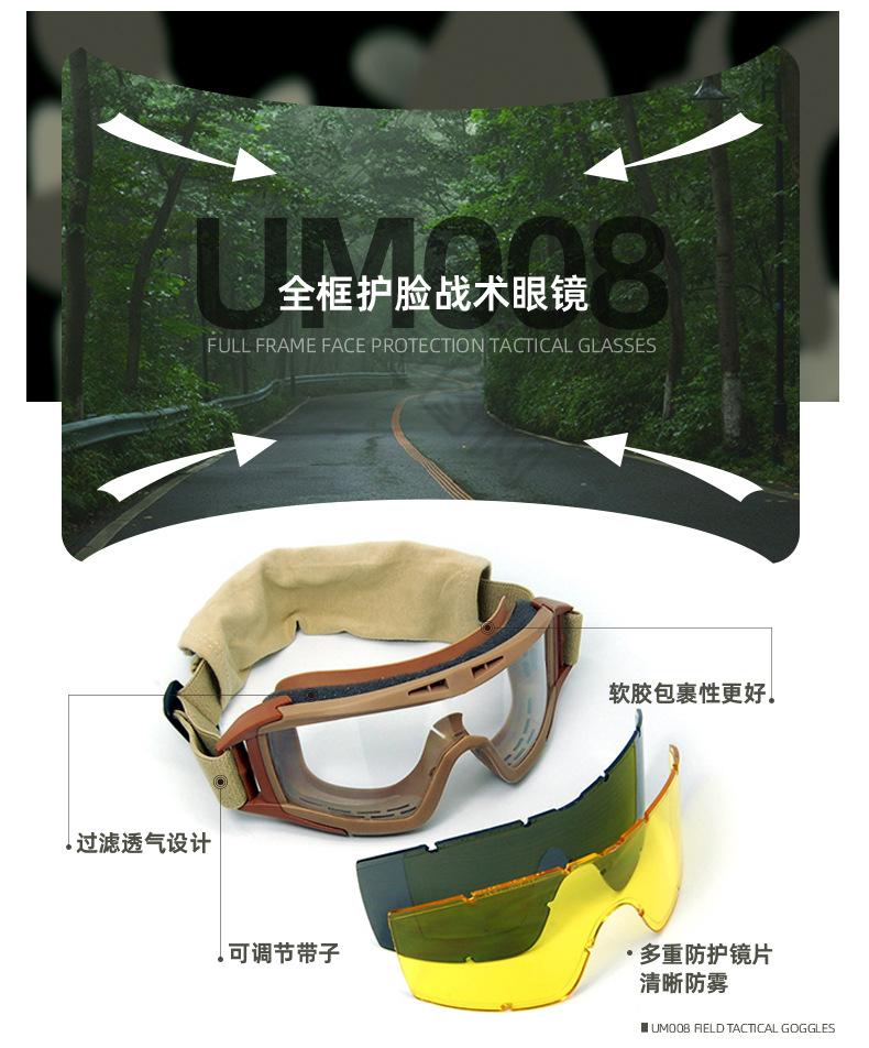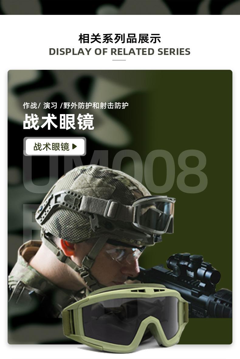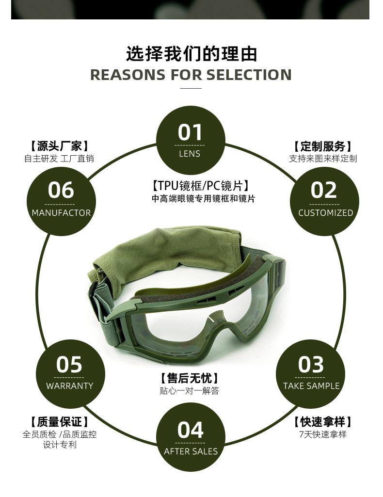 Punto de venta del producto: Diseño versión fan militar, simple y práctico; lente hecha de material PC, 2.5mm de espesor, alta transmitancia de luz y resistencia al impacto;