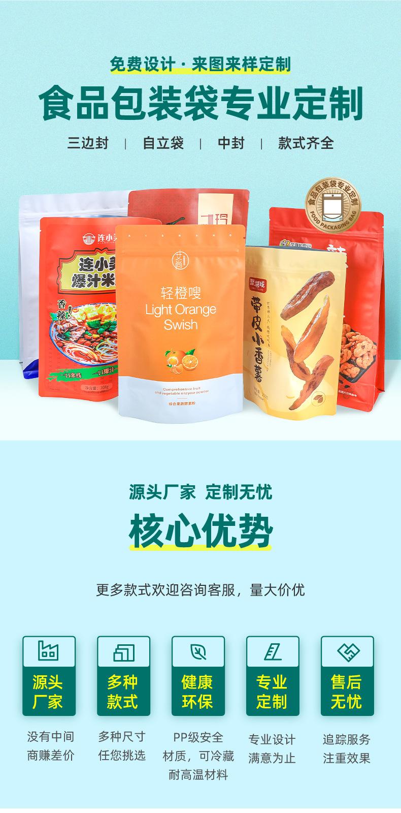 Bolsa de embalaje de alimentos, impresión de logotipo personalizado, bolsa de plástico para té, bolsa de papel kraft, bolsa autosellada, bolsa de vacío personalizada