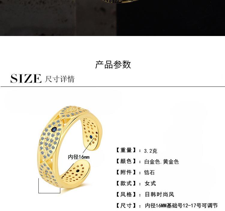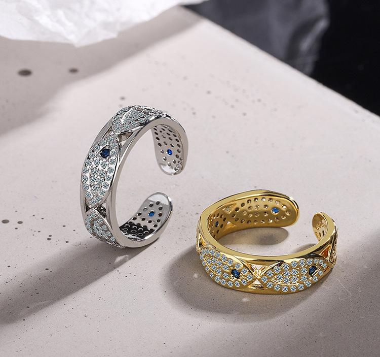 Anillo Ojo del Diablo Diamante Azul Joyería Elegante de Nicho Anillo Abierto Anillo de Mujer