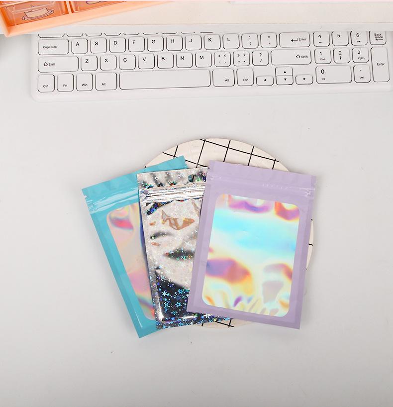 Bolsa autoadhesiva transparente de aspecto láser de alta calidad, bolsa para embalaje de joyas con tarjeta pequeña, engrosada, impermeable, bolsa de almacenamiento de regalos al por mayor