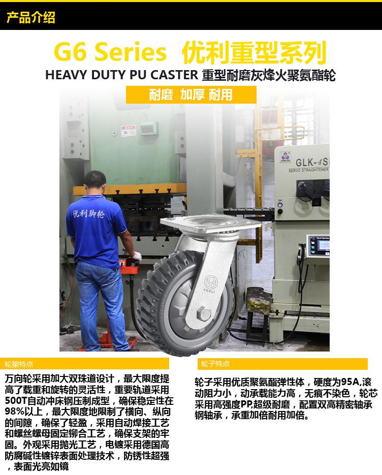 Los fabricantes suministran ruedas de carro de baliza de poliuretano PU de 4, 5, 6 y 8 pulgadas resistentes al desgaste de Youli.