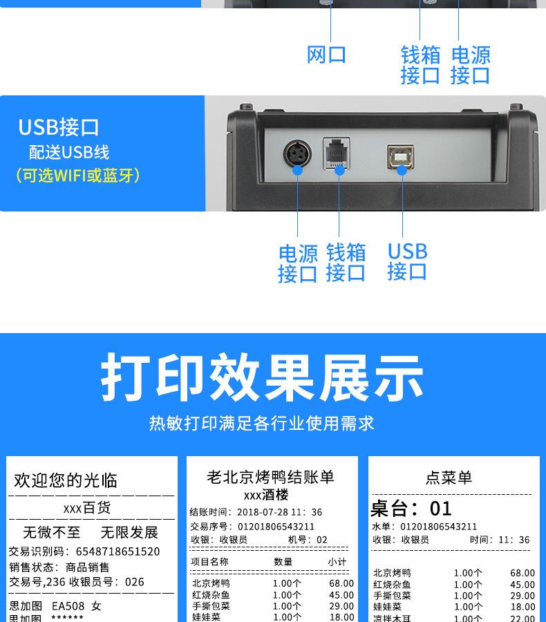 Impresora Térmica Bluetooth Xinye N160Ii 80mm Meituan Ele.Me Pedido para Llevar Cajero Cocina Máquina de Emisión de Tickets