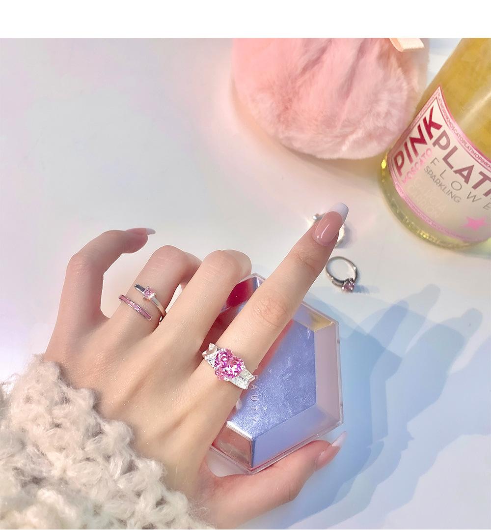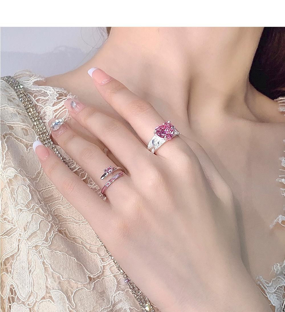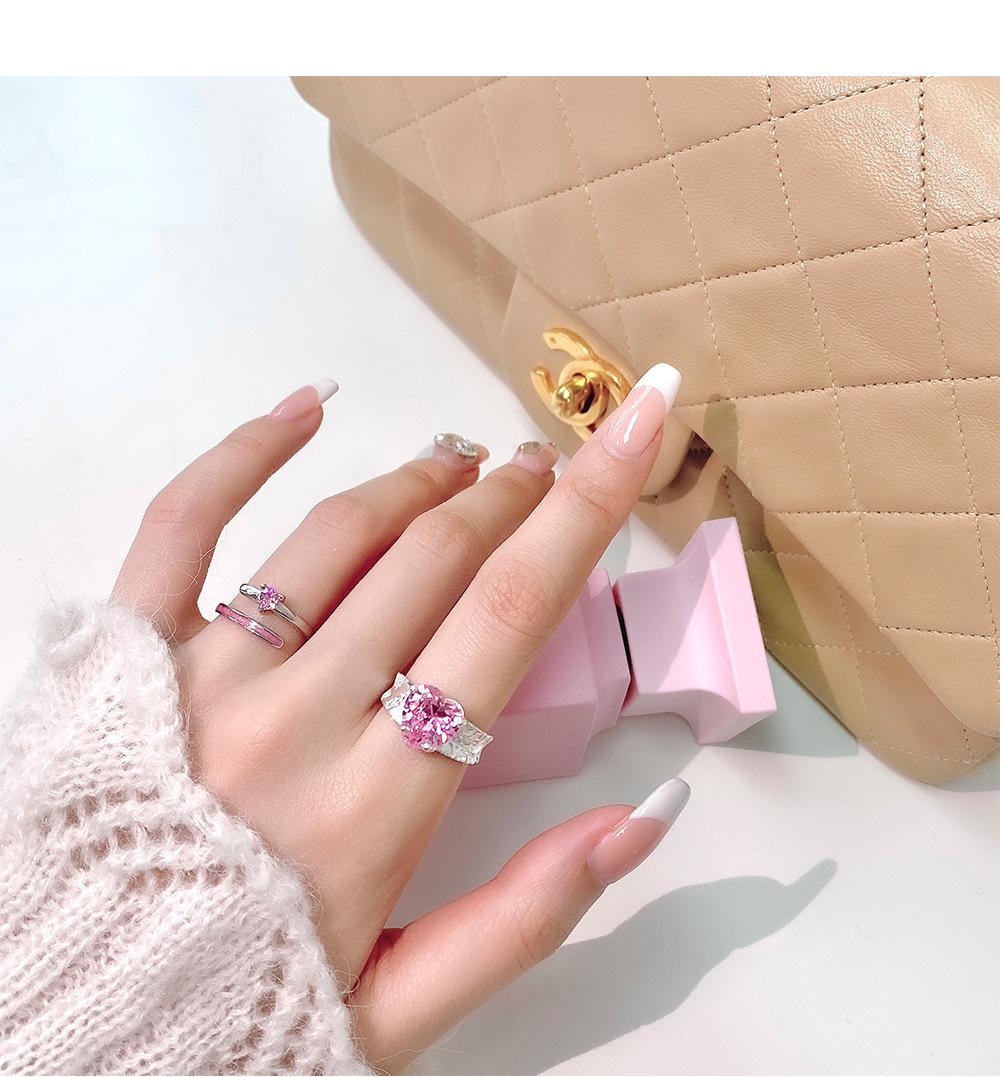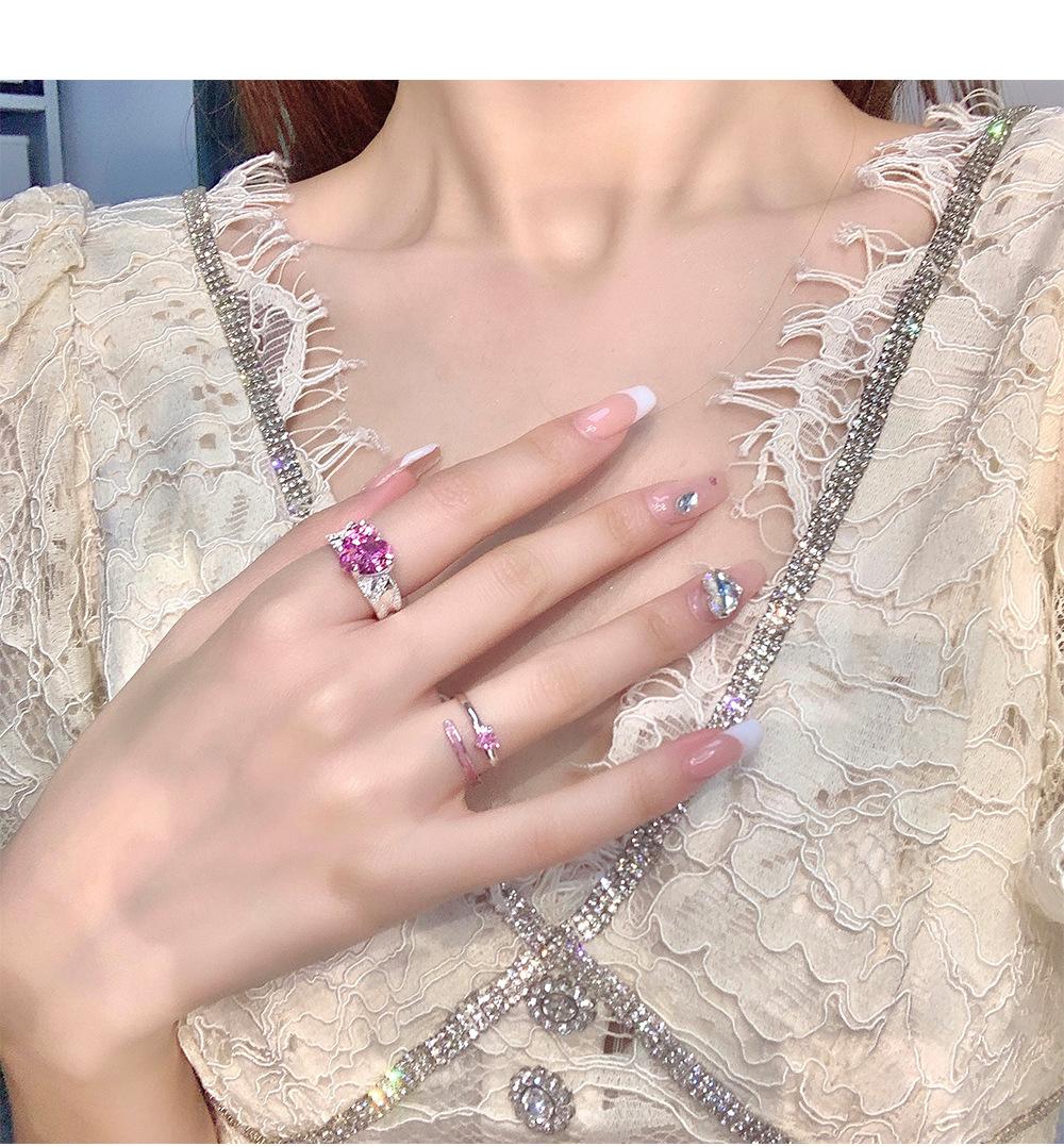Anillo de circonita rosa dulce y fresco para mujer, con diamantes completos, estilo dulce, anillo abierto a la moda que combina con todo.