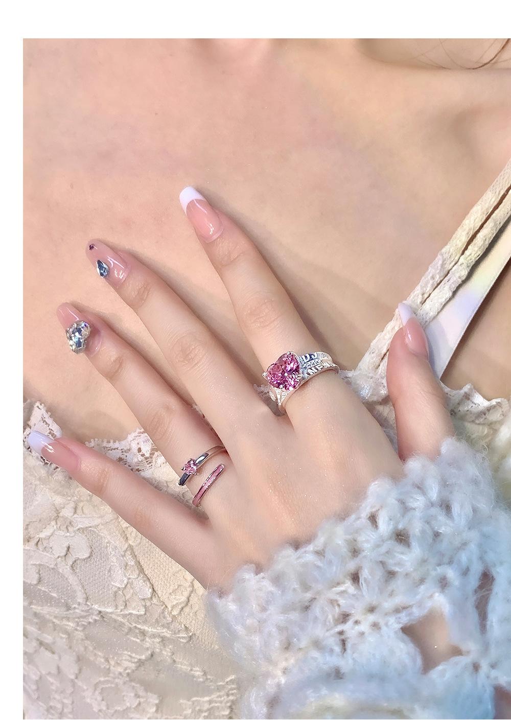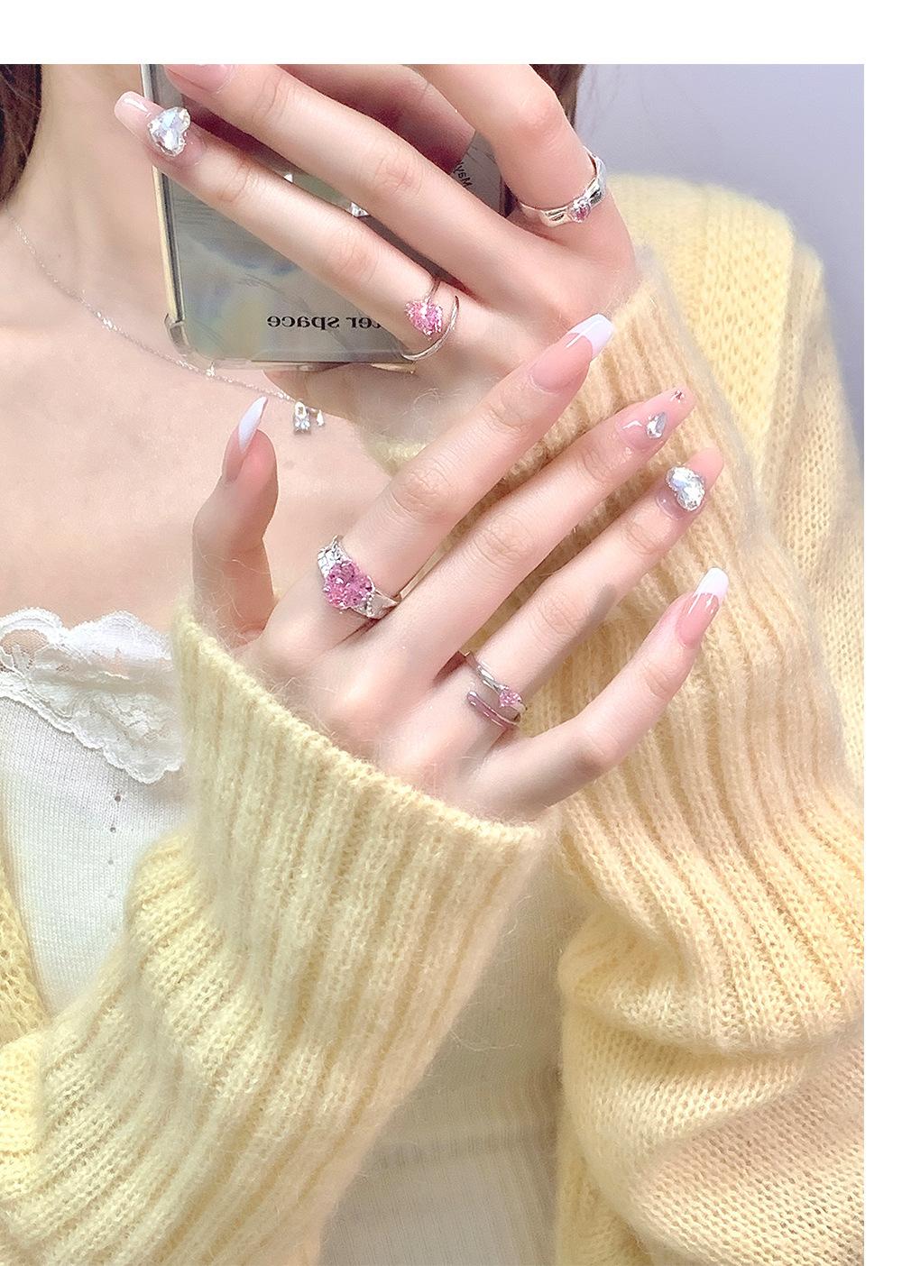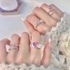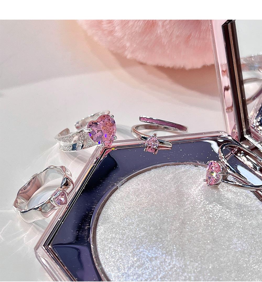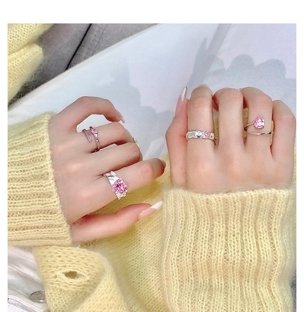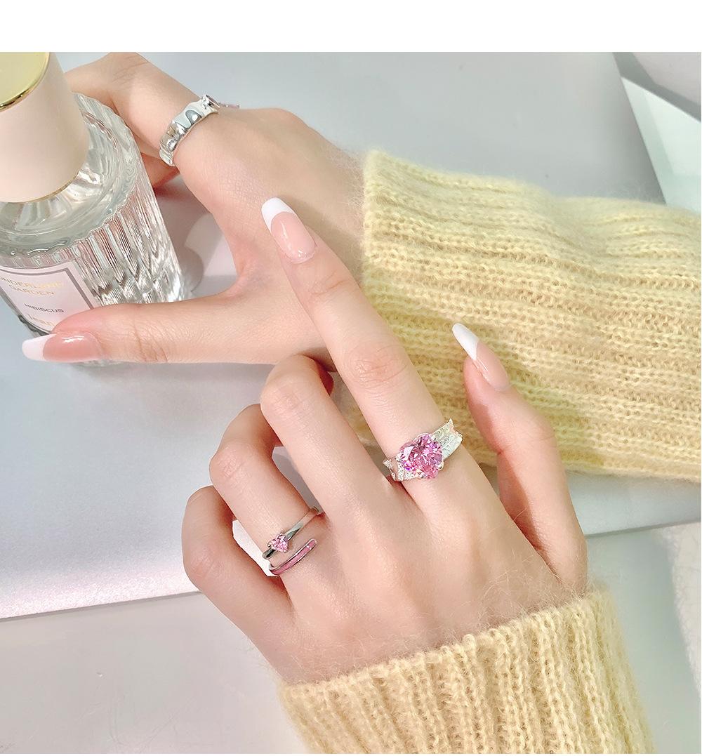 Anillo de circonita rosa dulce y fresco para mujer, con diamantes completos, estilo dulce, anillo abierto a la moda que combina con todo.