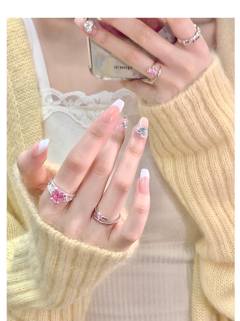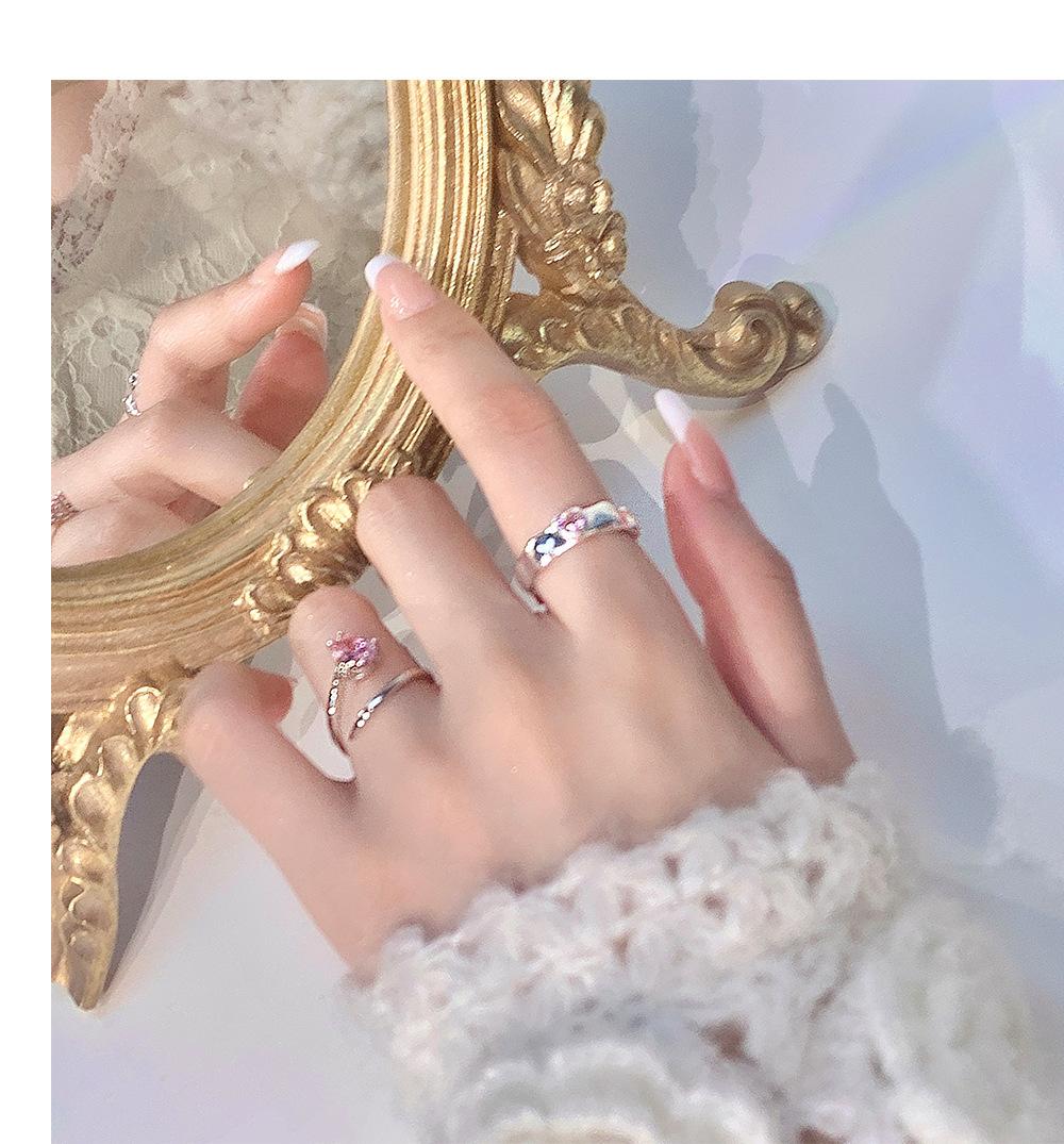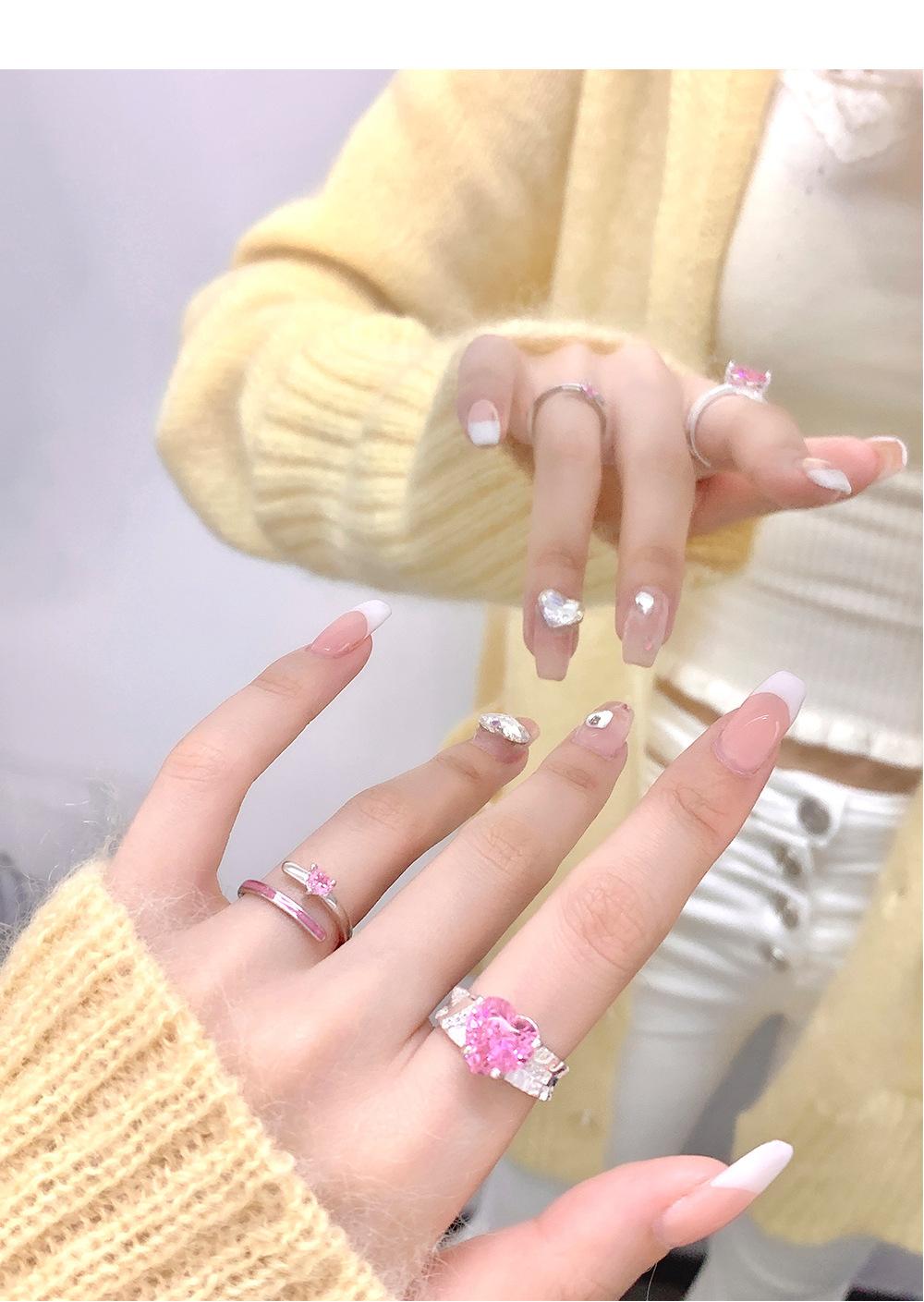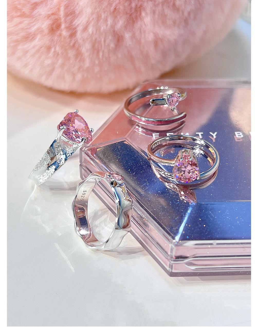 Anillo de circonita rosa dulce y fresco para mujer, con diamantes completos, estilo dulce, anillo abierto a la moda que combina con todo.