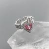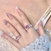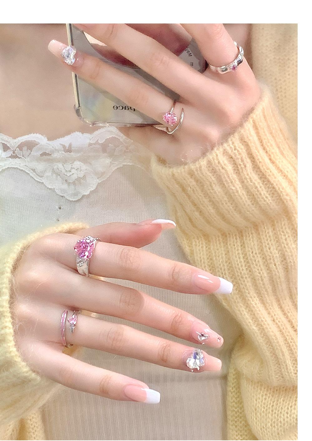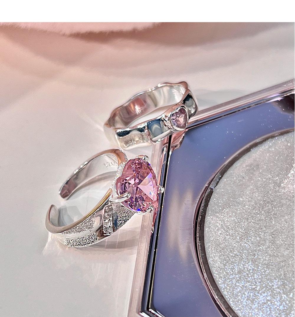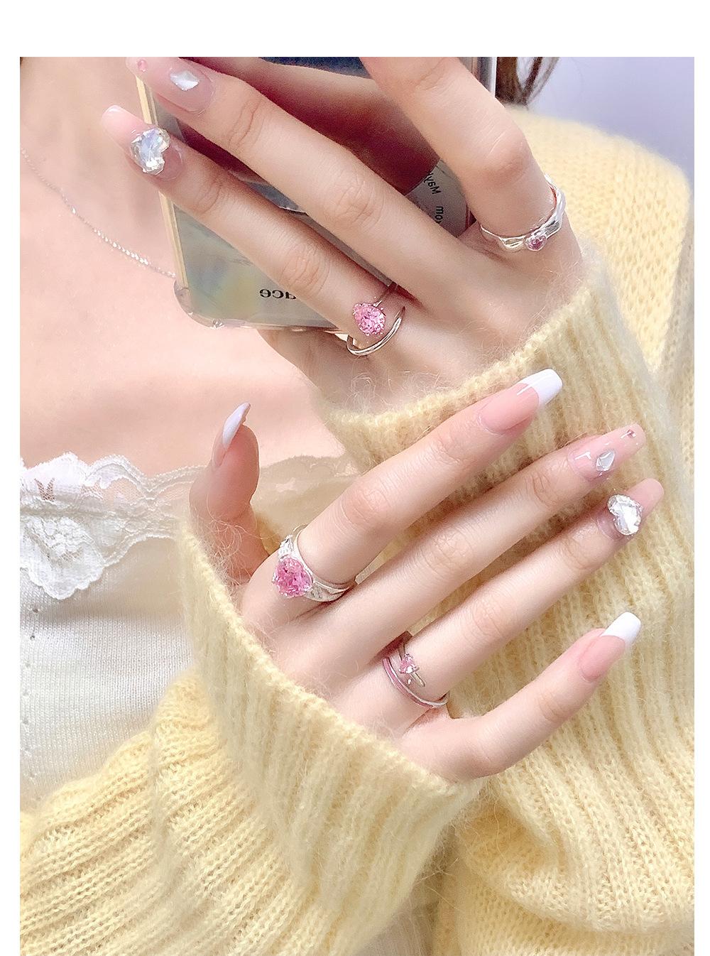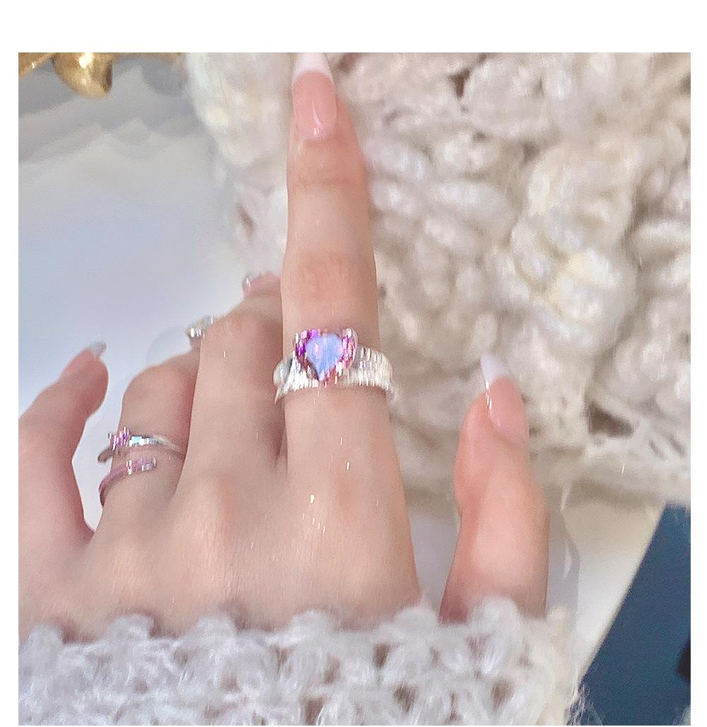 Anillo de circonita rosa dulce y fresco para mujer, con diamantes completos, estilo dulce, anillo abierto a la moda que combina con todo.