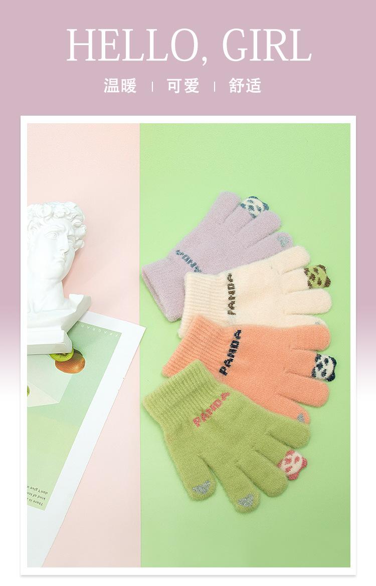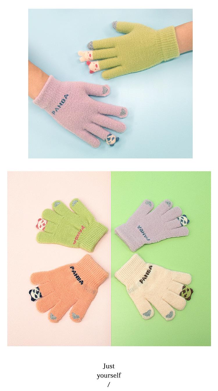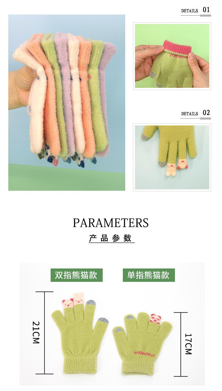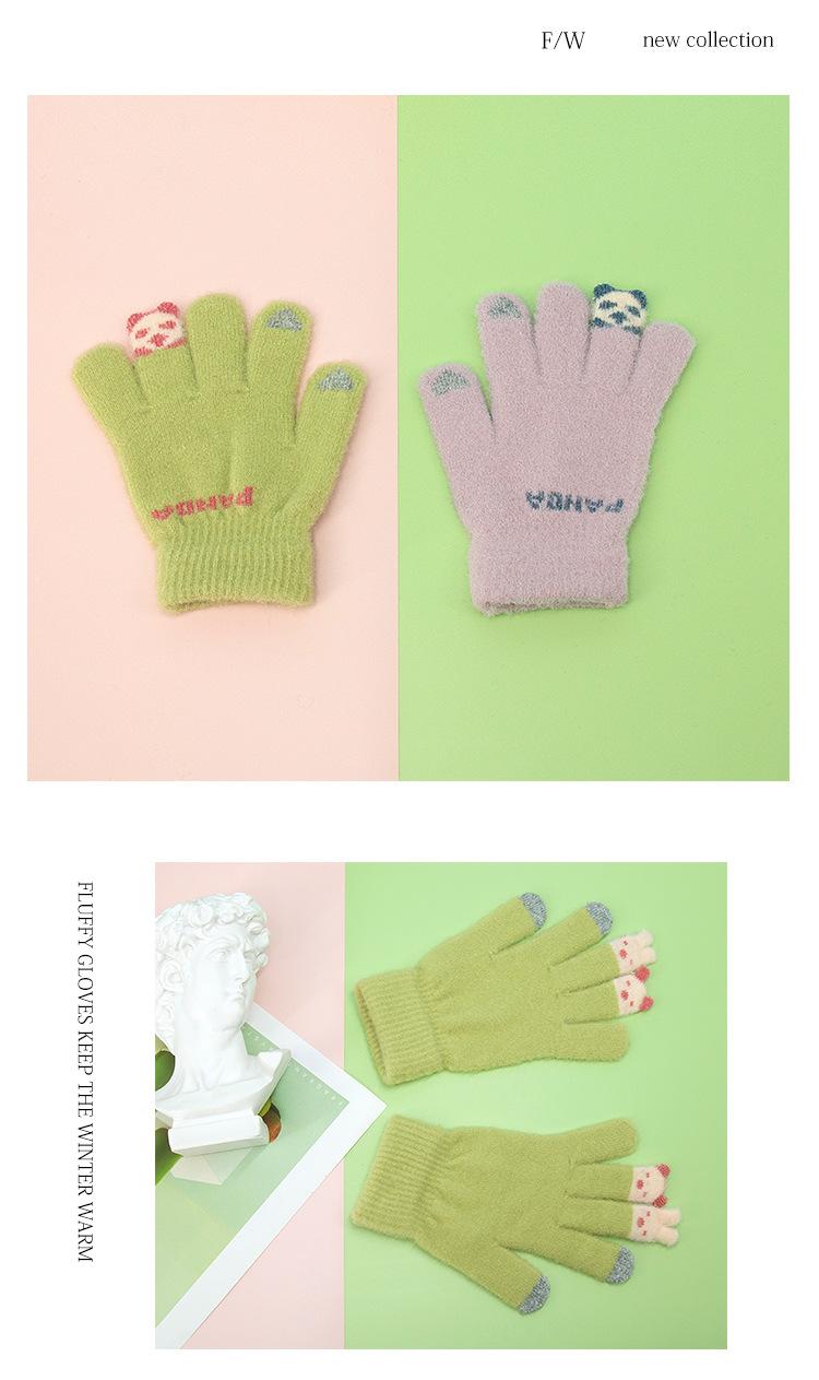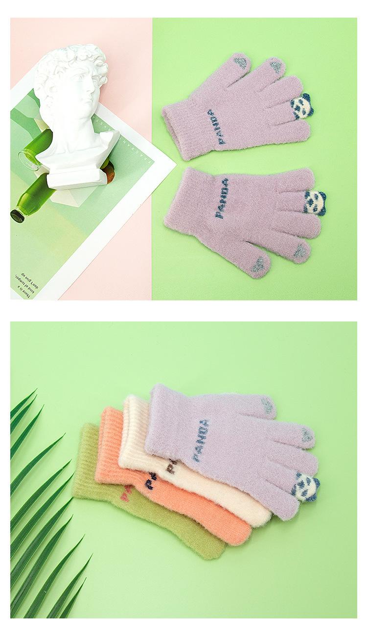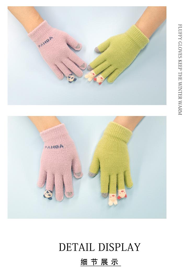 Guantes de punto afelpados con puntas de los dedos Panda para mujer Lindo Pantalla táctil Gruesos Cálidos para exteriores A prueba de frío Otoño e Invierno para Estudiantes