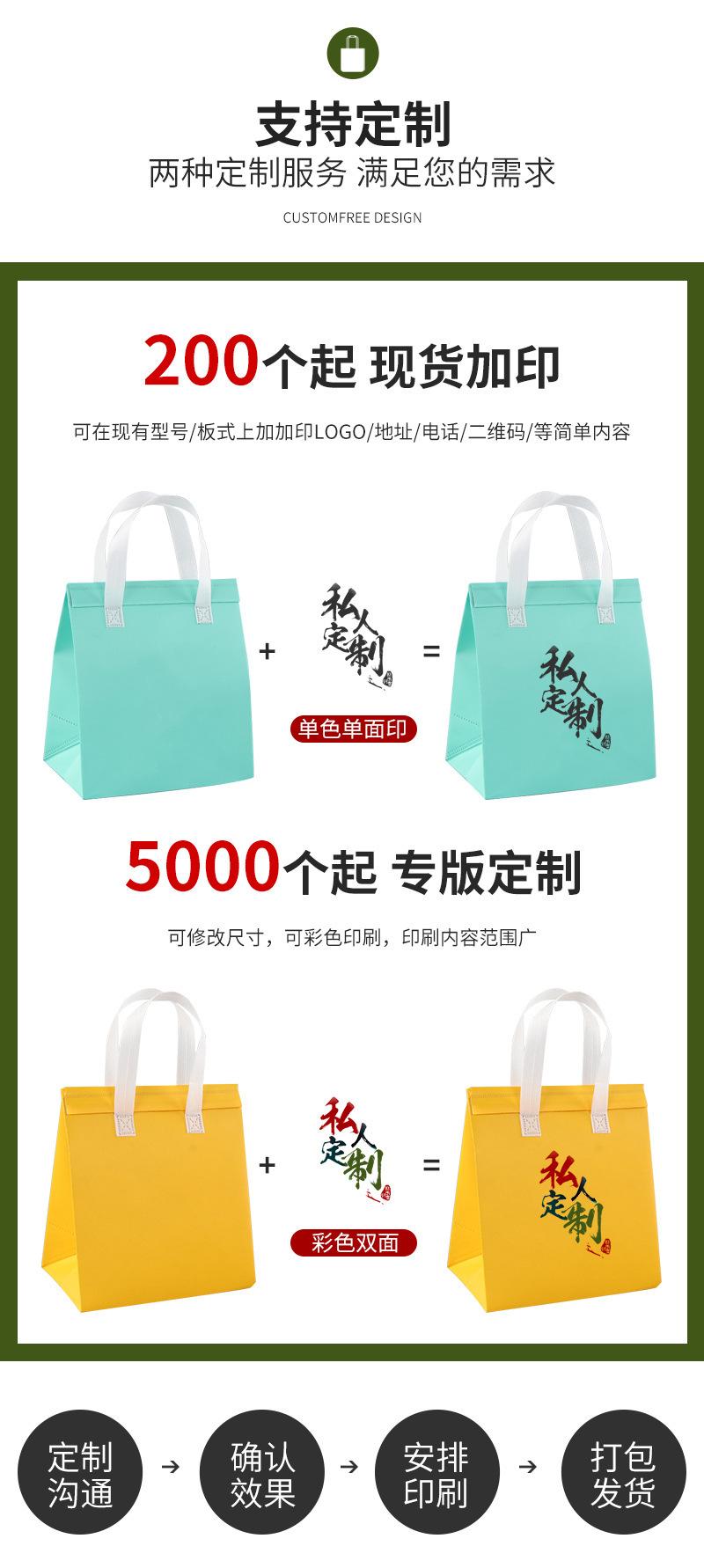 Las bolsas no tejidas son un tipo de tela no tejida que utiliza directamente rodajas de polímero, fibras cortas o filamentos para formar nuevos productos de fibra con estructura suave, transpirable y plana a través de diversos métodos de formación de red y tecnologías de consolidación. Las bolsas no tejidas generalmente utilizan el proceso de serigrafía, que a menudo se denomina "impresión serigráfica". Este siempre ha sido un proceso de impresión comúnmente utilizado por muchos fabricantes. Las bolsas no tejidas son productos respetuosos con el medio ambiente y un tipo relativamente común de bolsa de embalaje. Se utilizan principalmente para compras, embalaje, publicidad, electrónica, ropa, decoración y otros productos. |