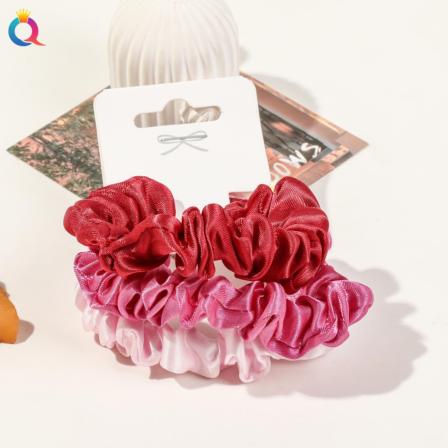 Satin hair ties 3 pack-burgundy rose pink light pink