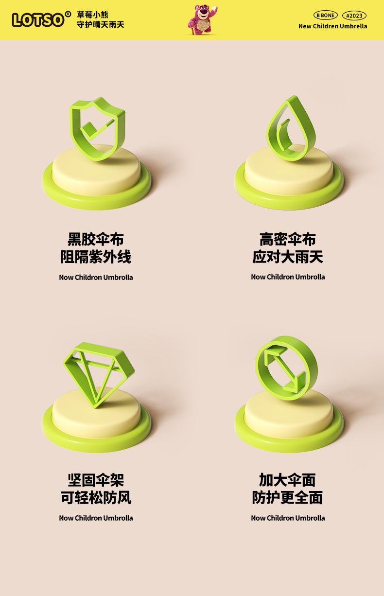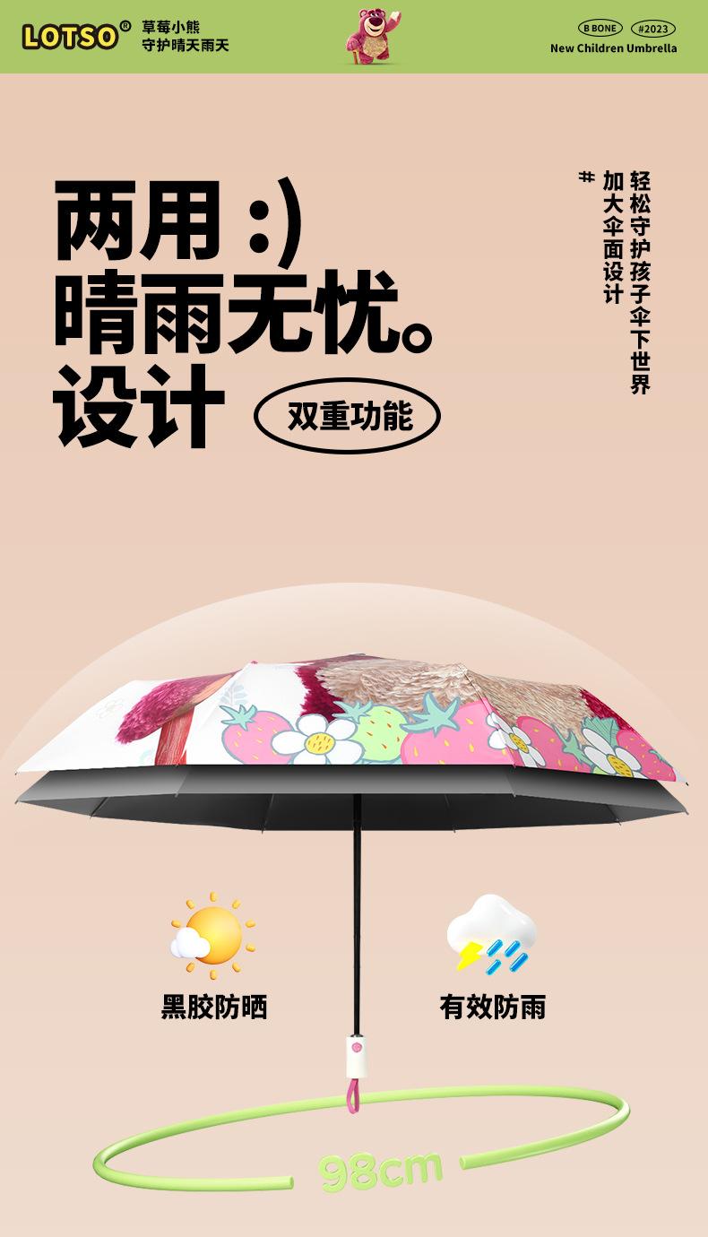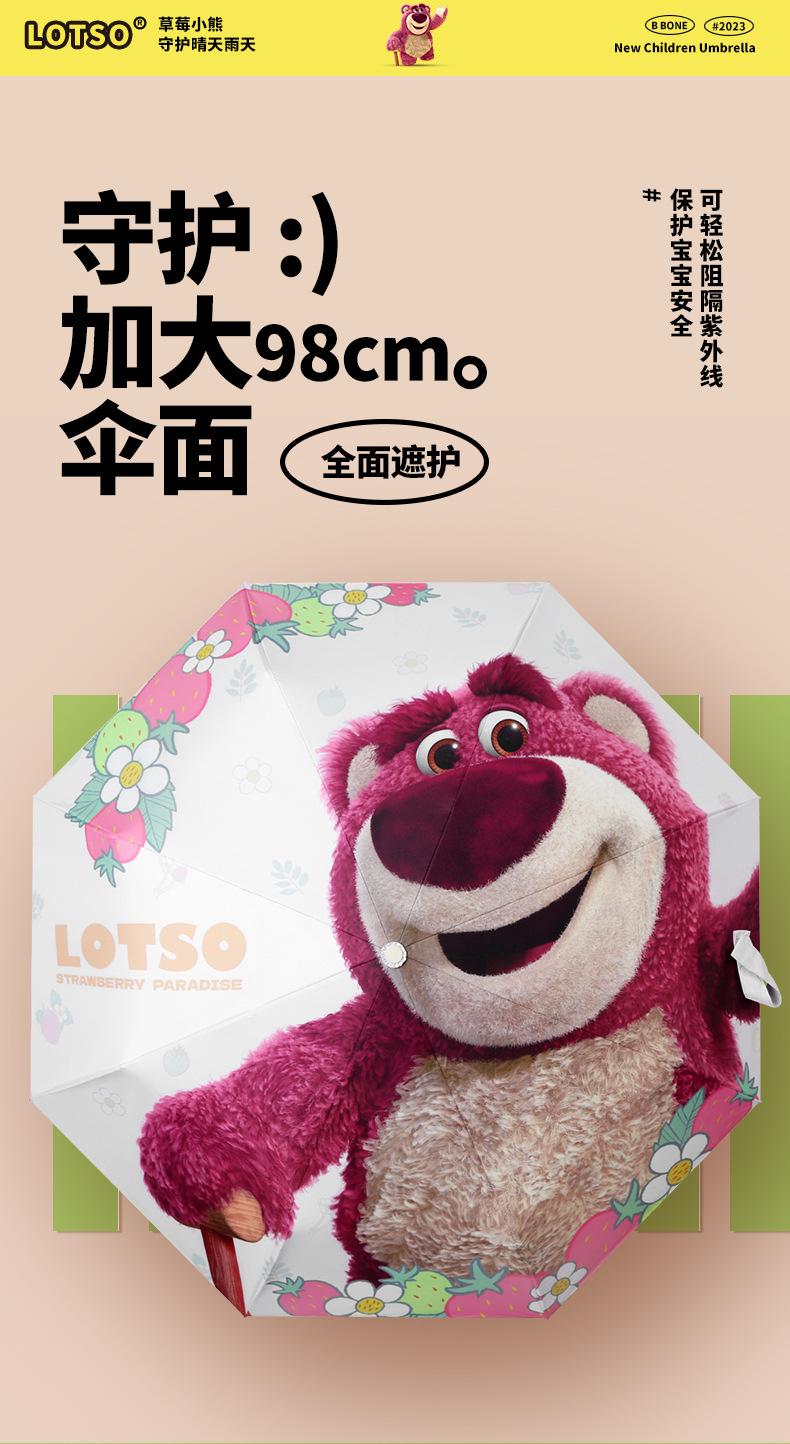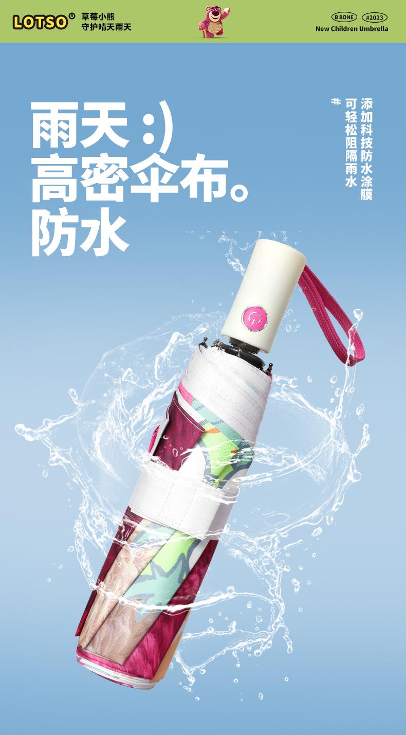 Tri-fold automatic strawberry bear-white background, Tri-fold automatic strawberry bear-pink bottom, Hand Open...