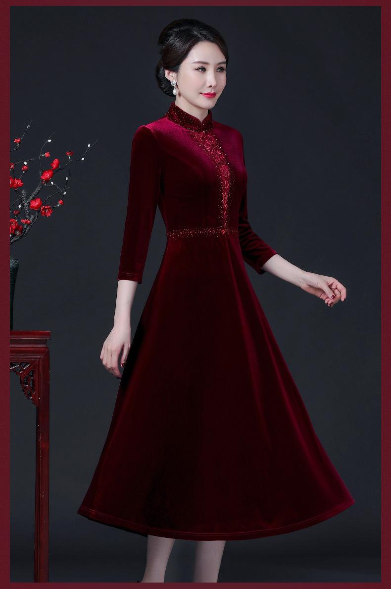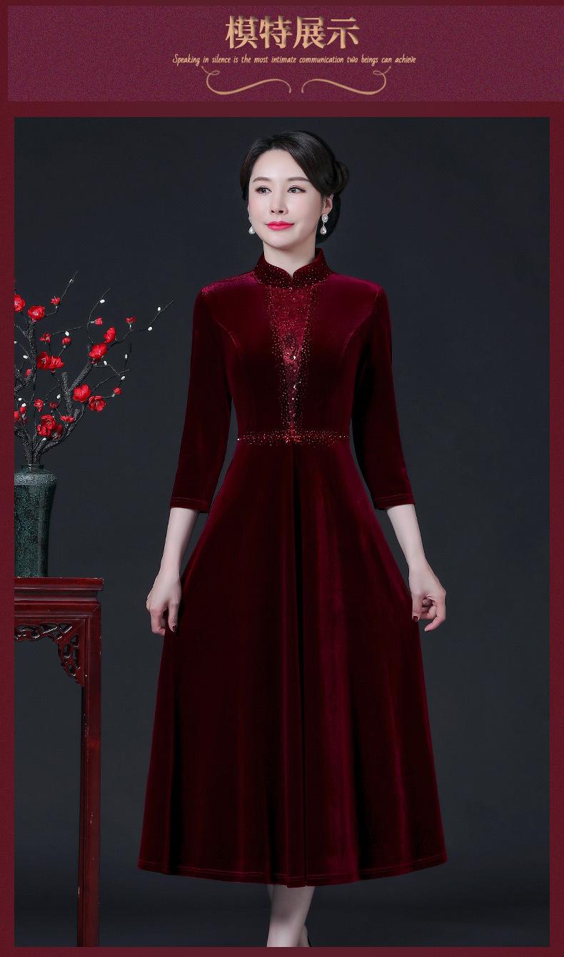 Otoño 2023 Nuevo vestido de mamá Vestido de mujer Vestido de noche de banquete Falda Vestido diario vestido