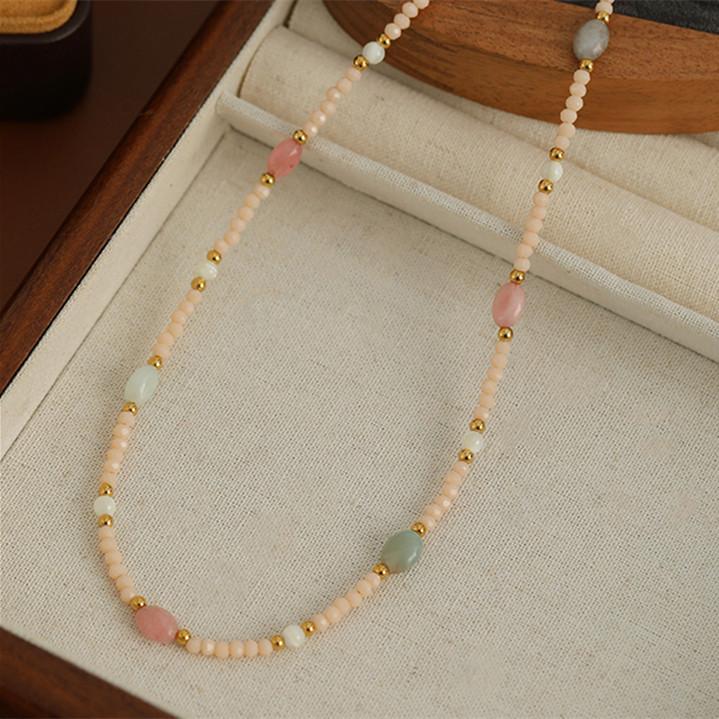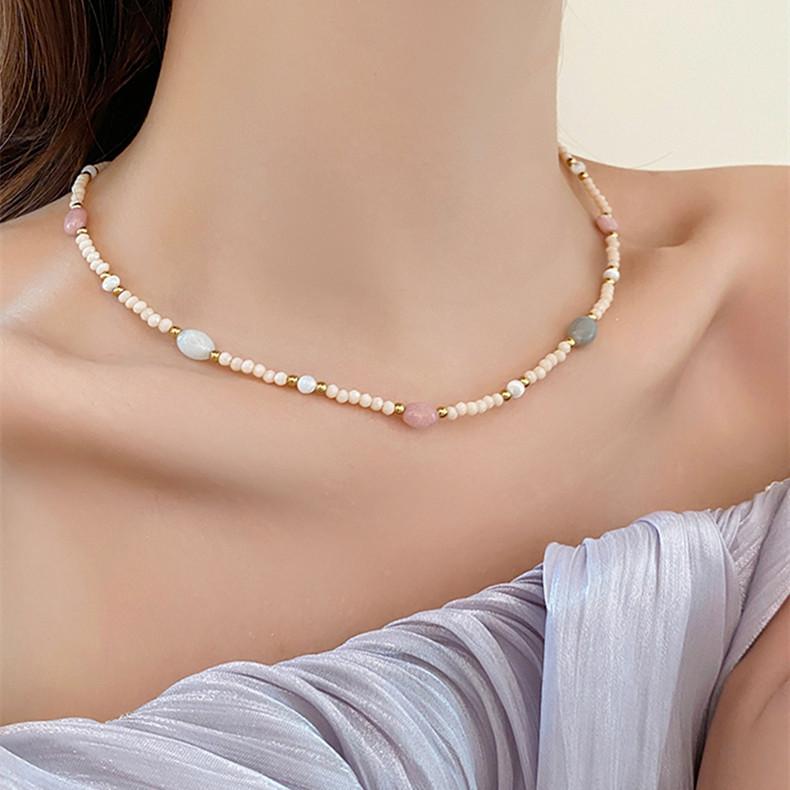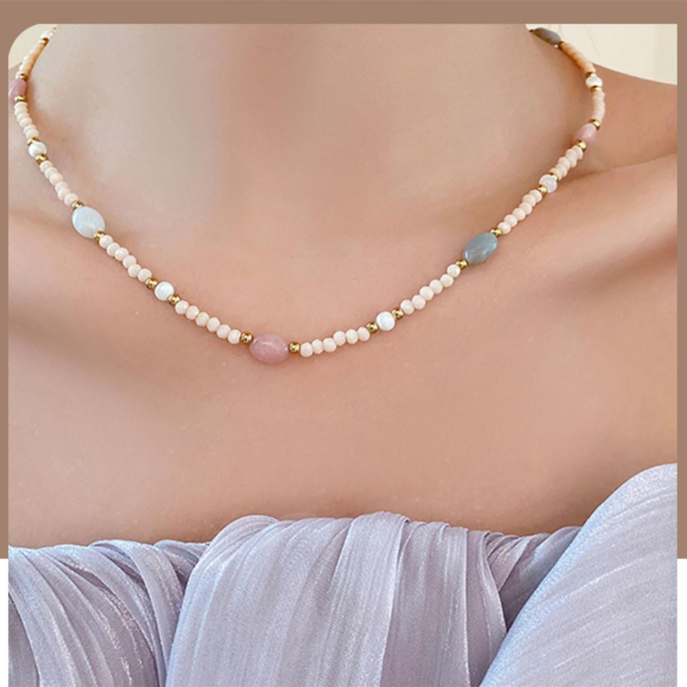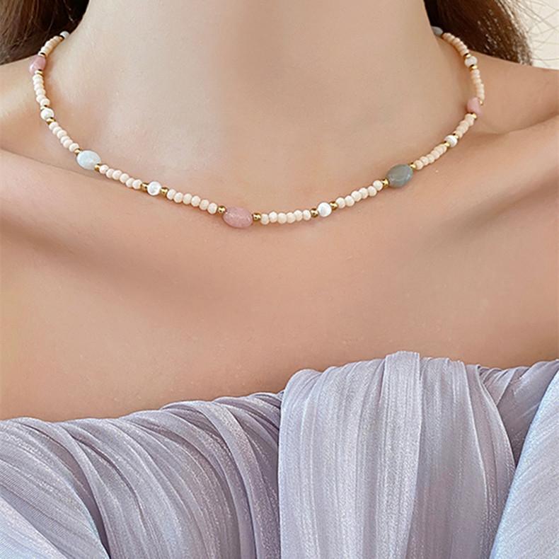 Collar de cuentas de color piedra natural, cadena de clavícula de nicho de lujo ligero y temperamento para mujer, cadena de suéter de estilo bohemio de alta calidad