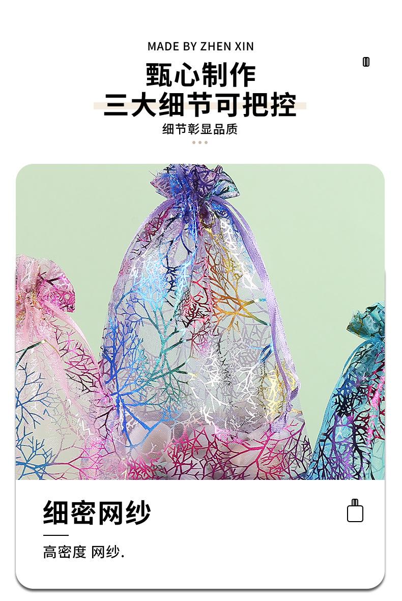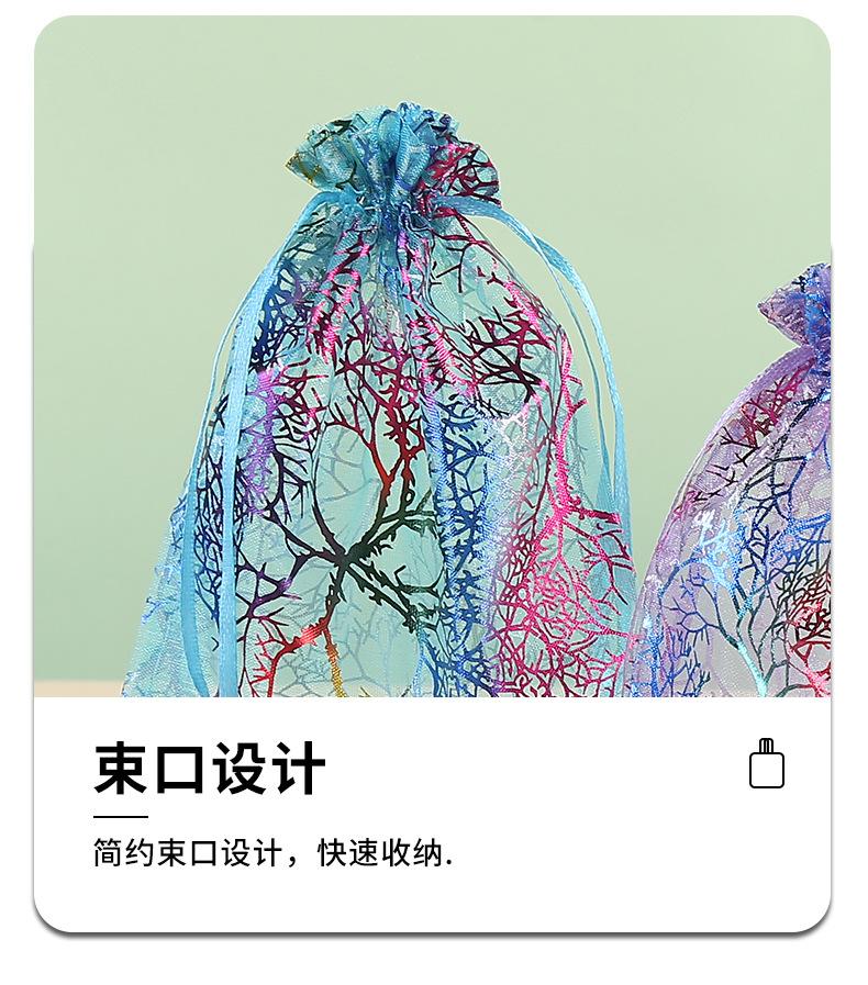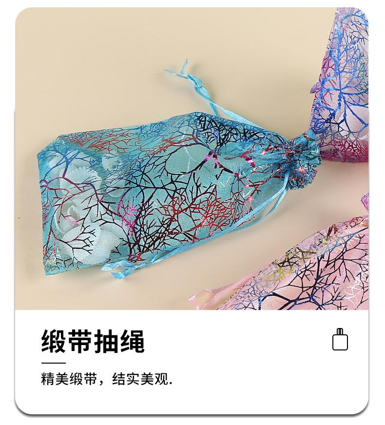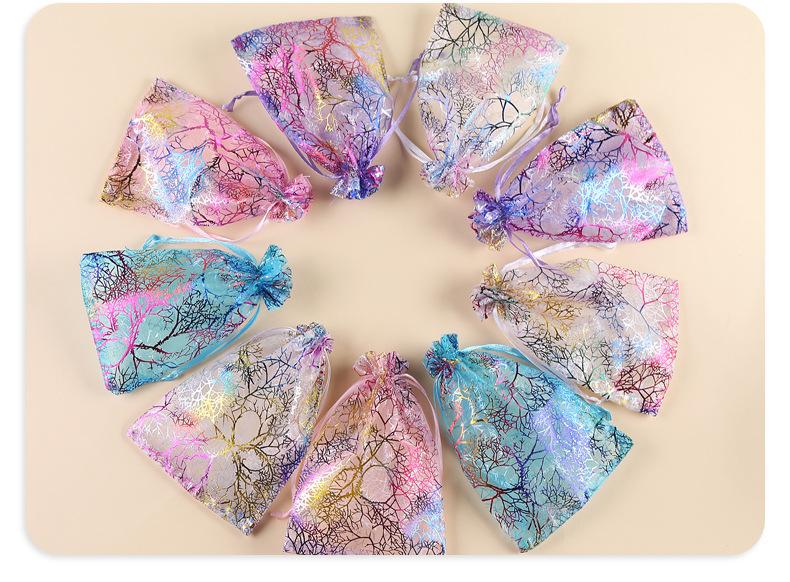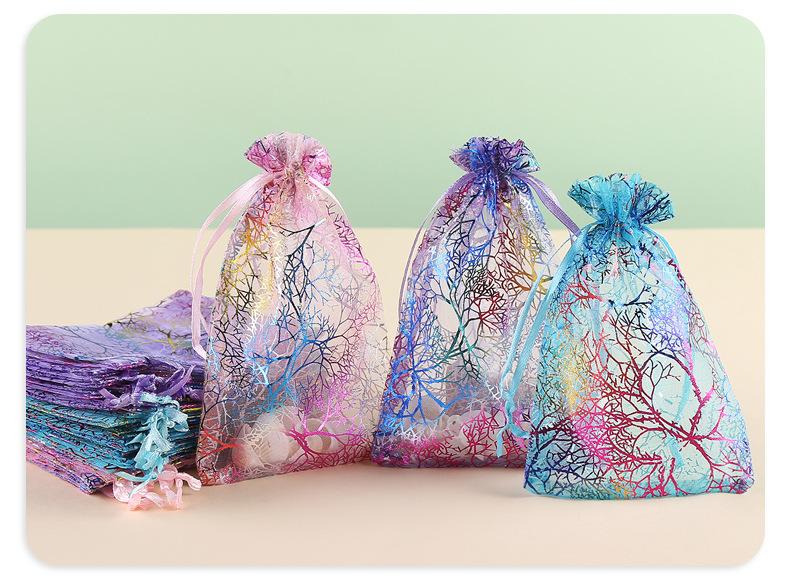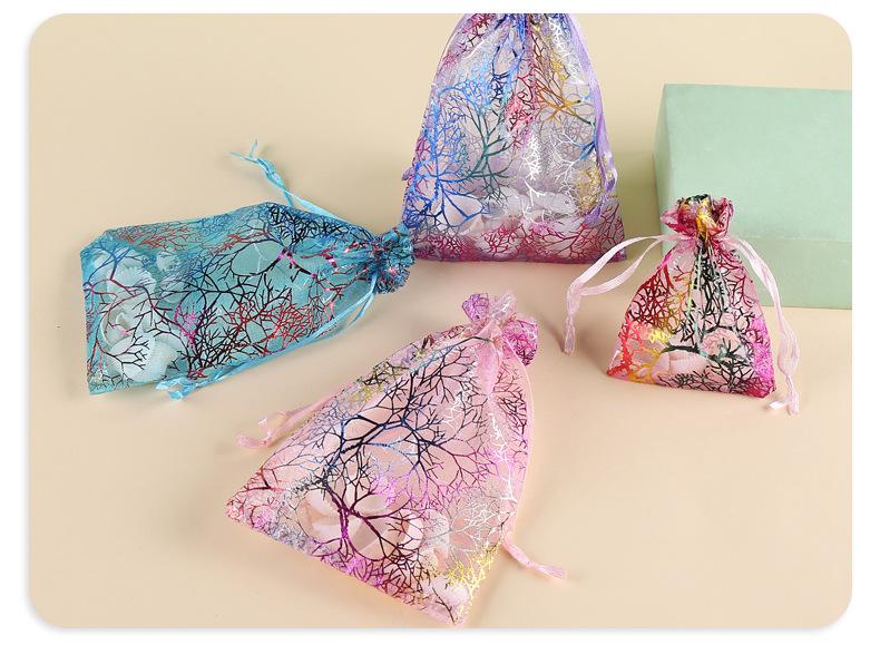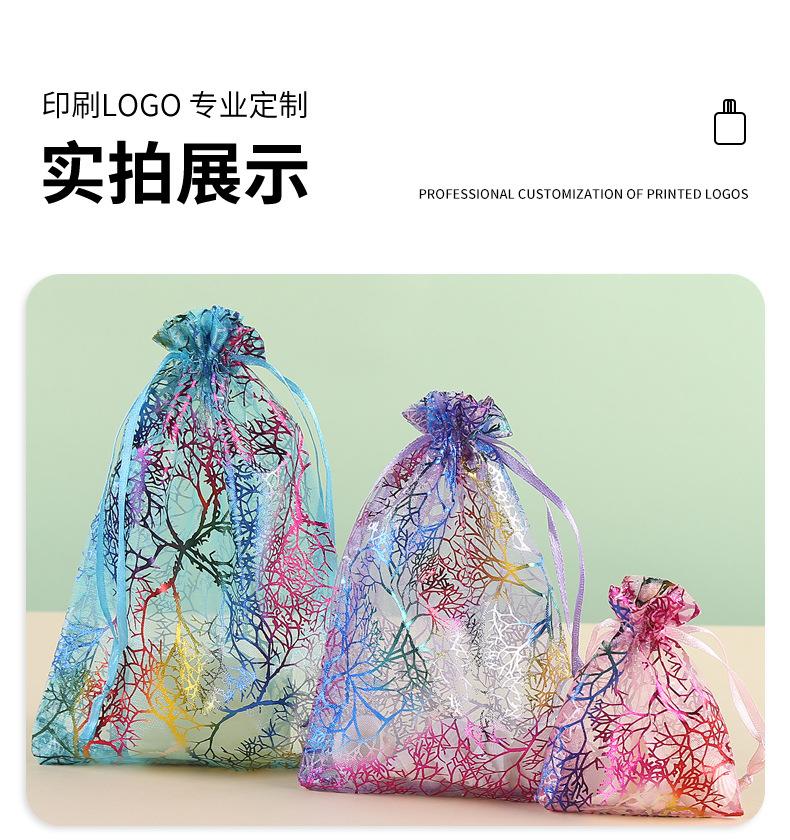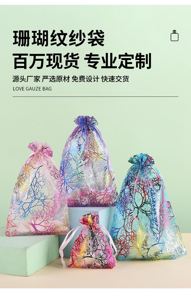 Bolsa de hilo coral bronceado al por mayor de fábrica, bolsa de embalaje para regalo de joyería, bolsa de organza con cordón ajustable de colores