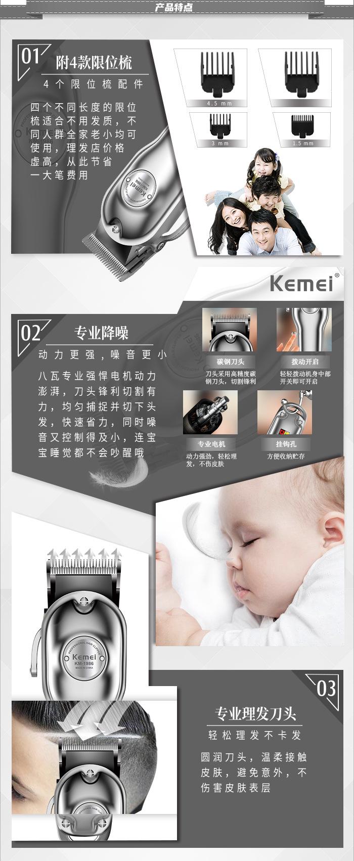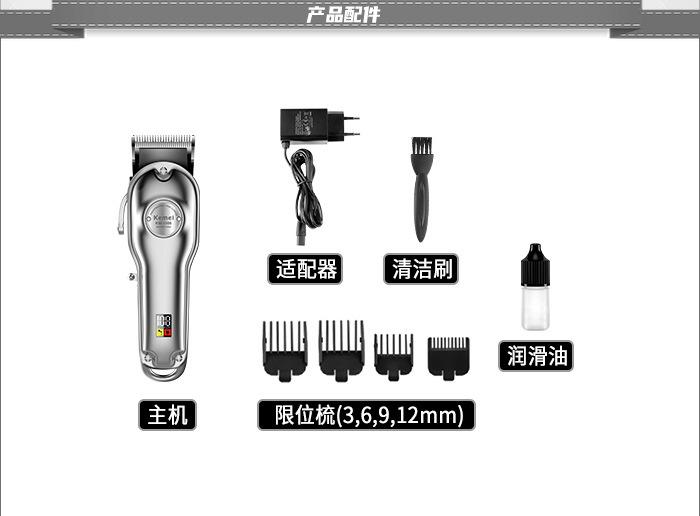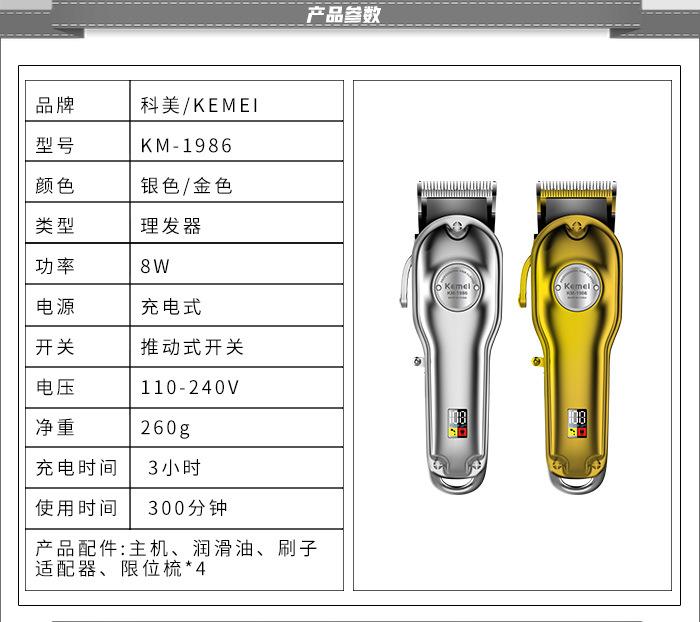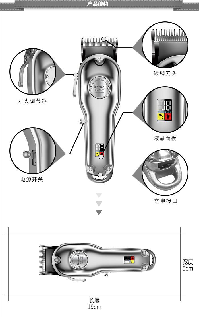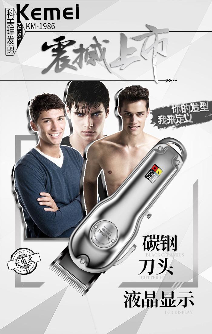 Kemei Cortadora de Cabello Cuerpo de Metal Pantalla Digital Cortadora de Cabello Salón de Peluquería Profesional Cortadora Eléctrica Km-1986