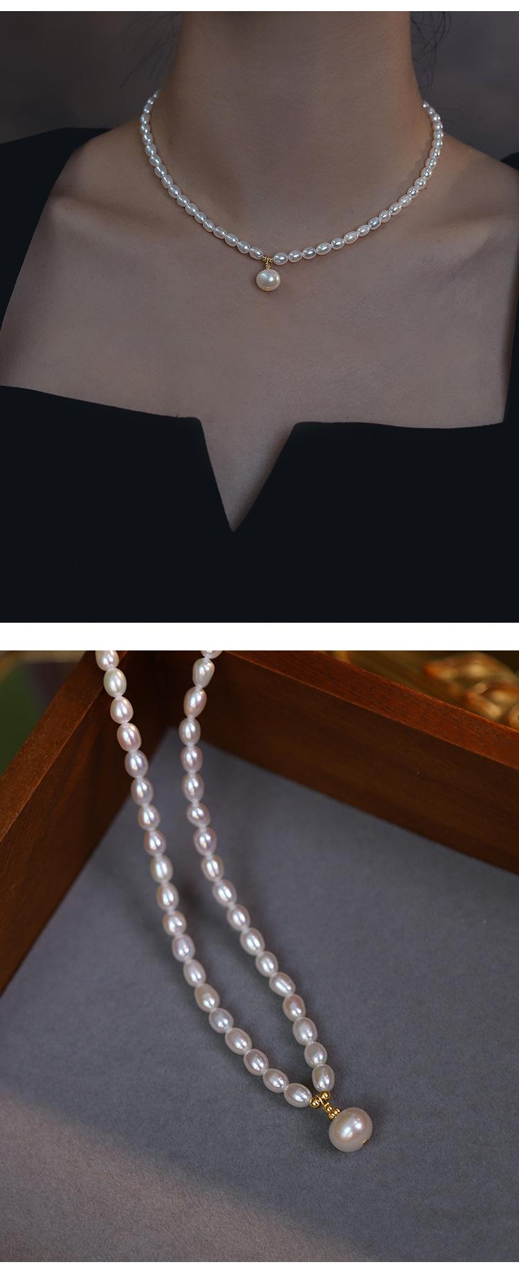 Collar sencillo con perlas de agua dulce de grano de arroz, diseño elegante y moderno, cadena para clavícula, estilo retro, estilo palacio, popular en Internet, para novias.