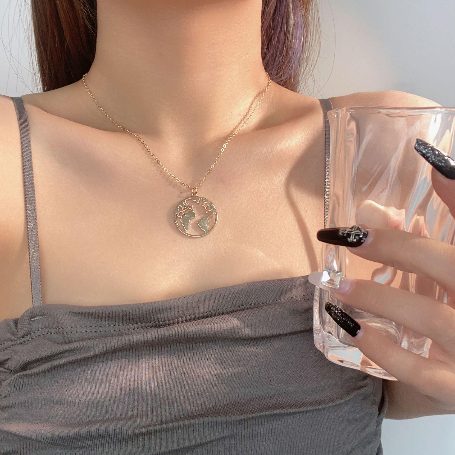 Colgante de mapa europeo y americano para mujer, nuevo diseño de nicho de lujo ligero, cadena de suéter de alta calidad a la moda que combina con todo.