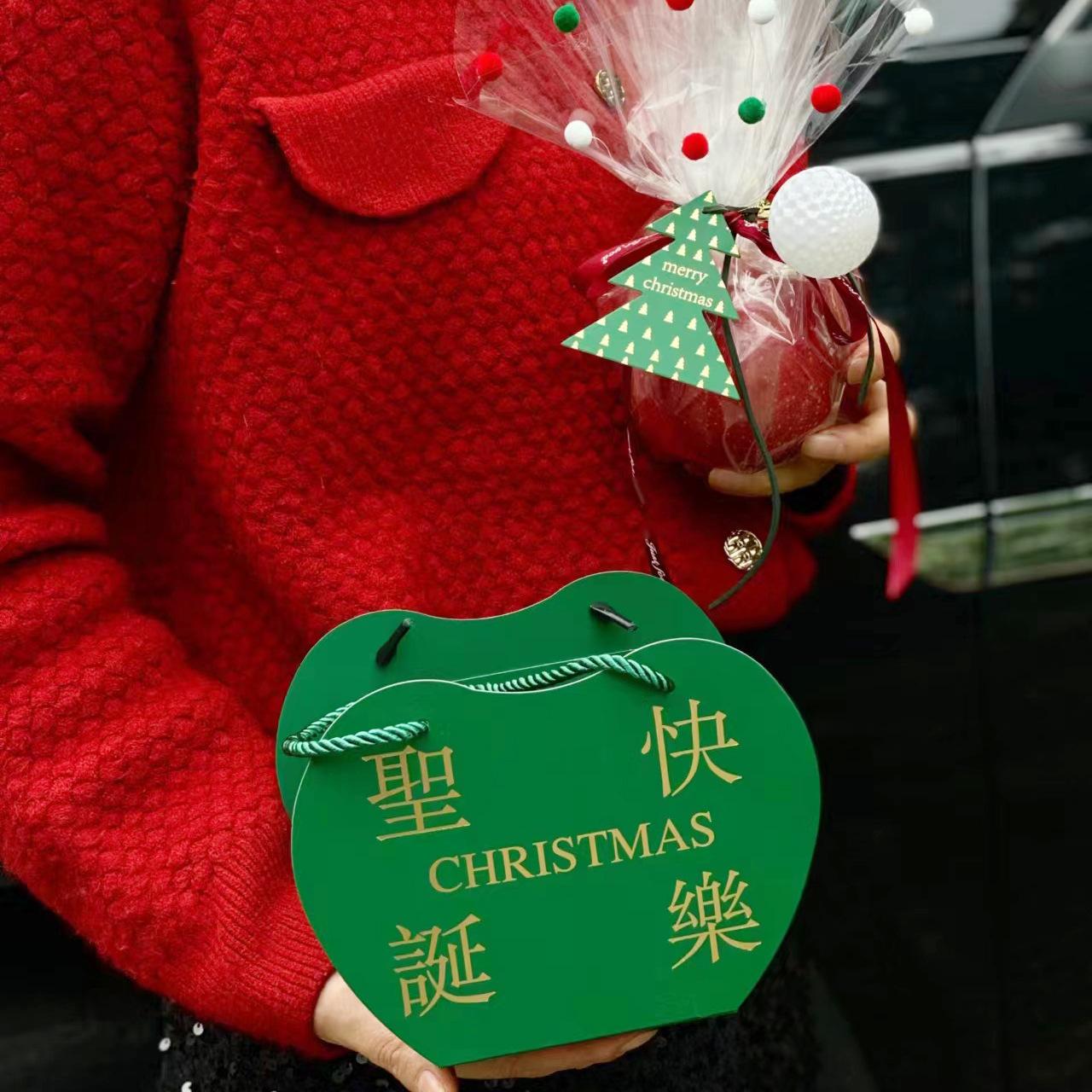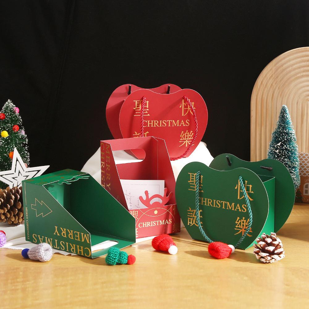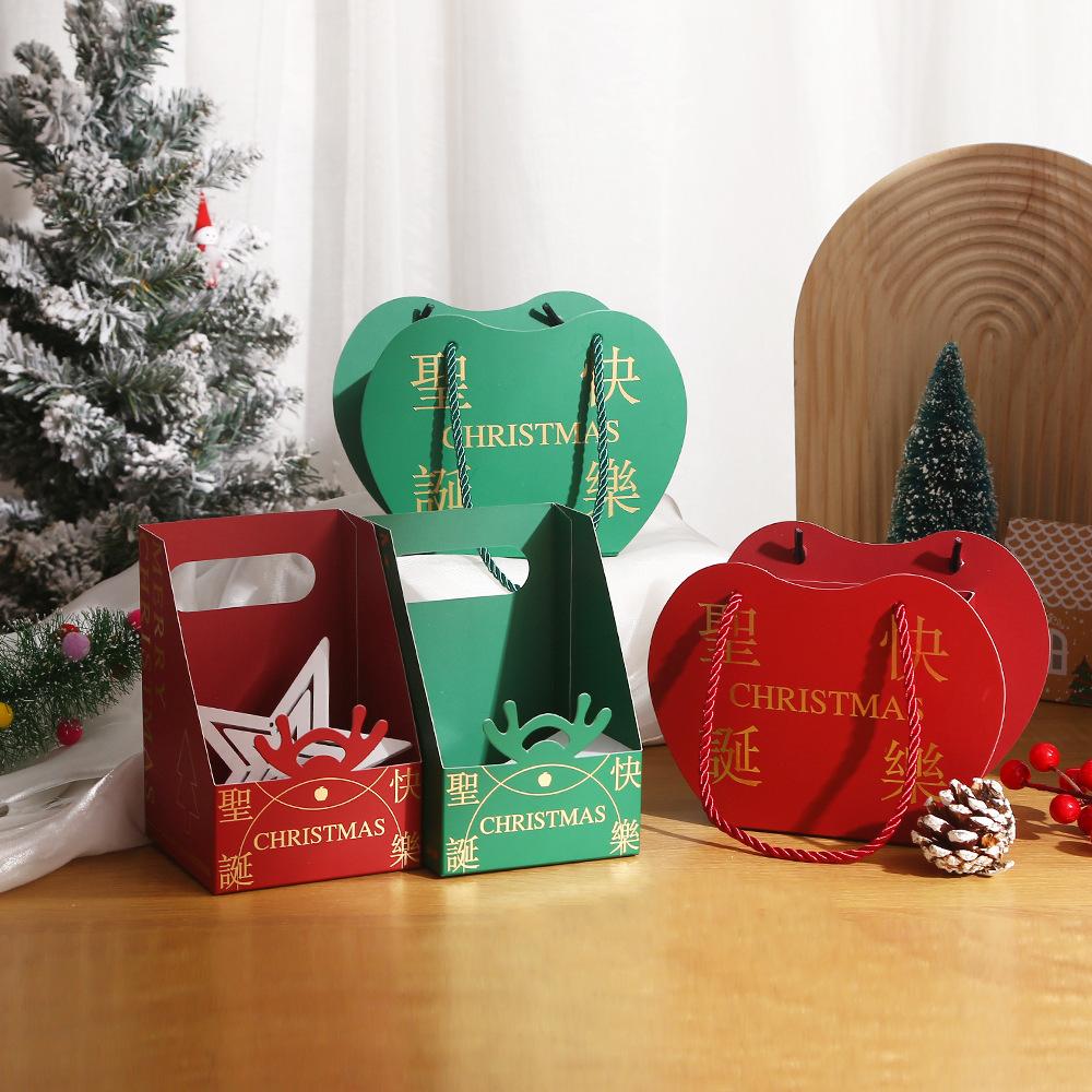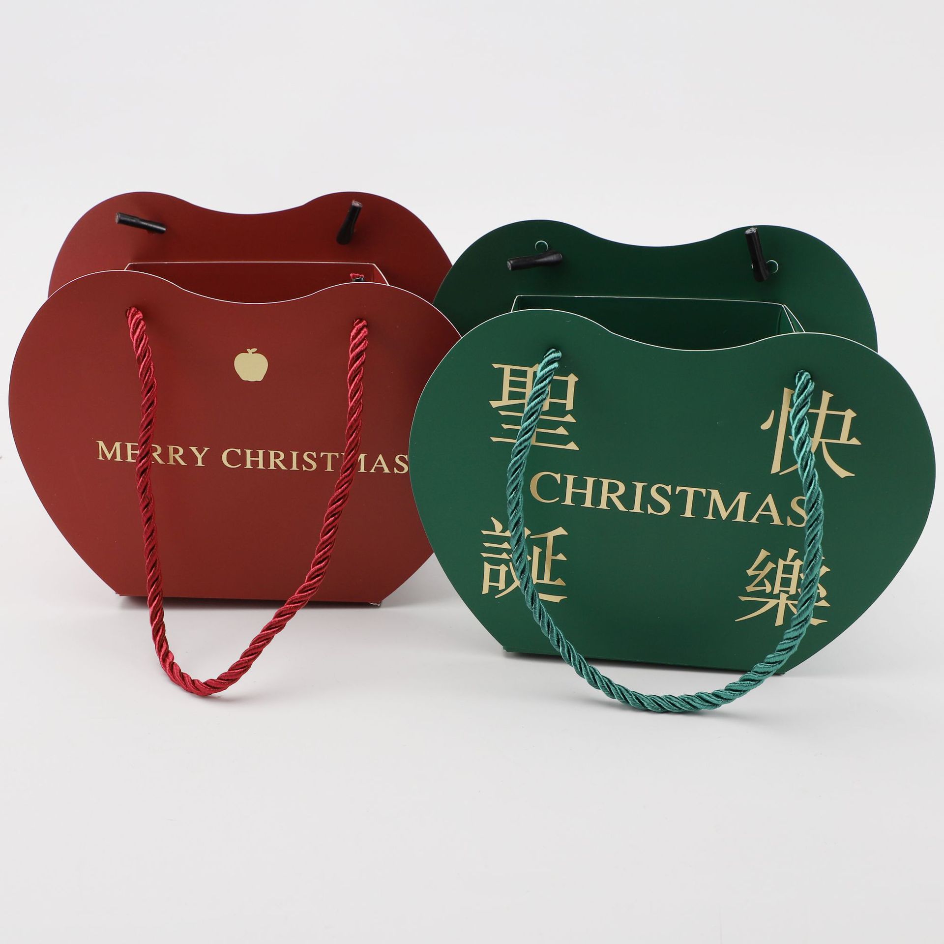 Caja de manzana navideña de cartón duro de varios estilos, resistente al agua, con impresión en rojo y verde, portátil y segura, caja de regalo de fruta, gran cantidad y excelente precio