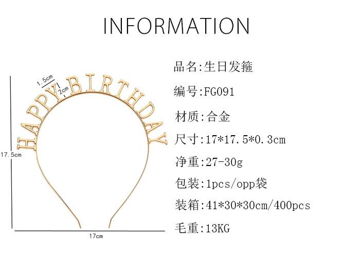 Accesorios para el cabello y tocados para fiestas de cumpleaños, letras de aleación, feliz cumpleaños, diadema de feliz cumpleaños, diadema ins |