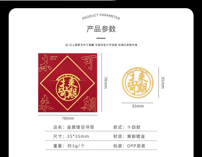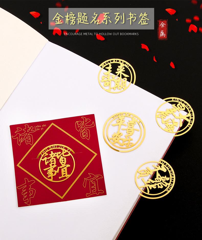 Separador de Libros de Metal para Regalo Texto de Incentivo Pequeño Regalo Estilo Chino Calado Separador de Libros Conmemorativo Creativo Carpeta para Libros de Estudiante