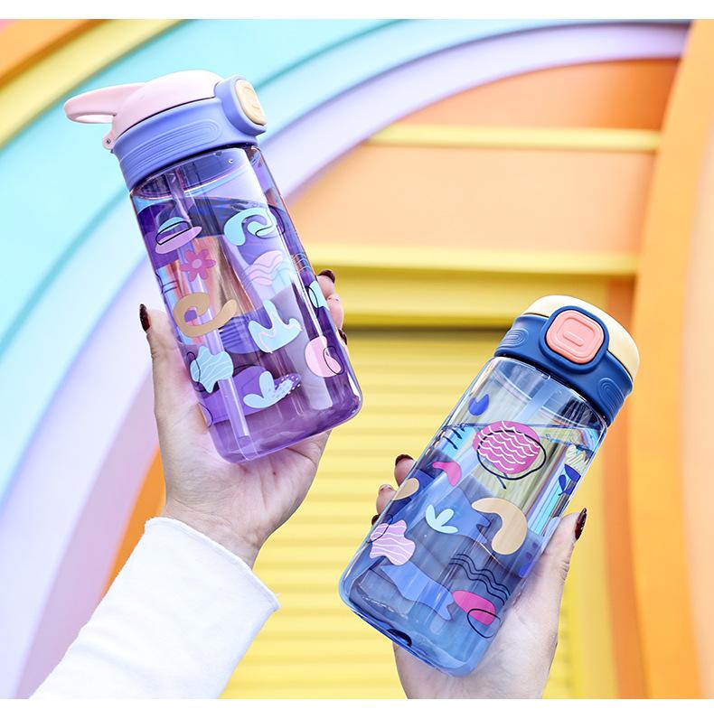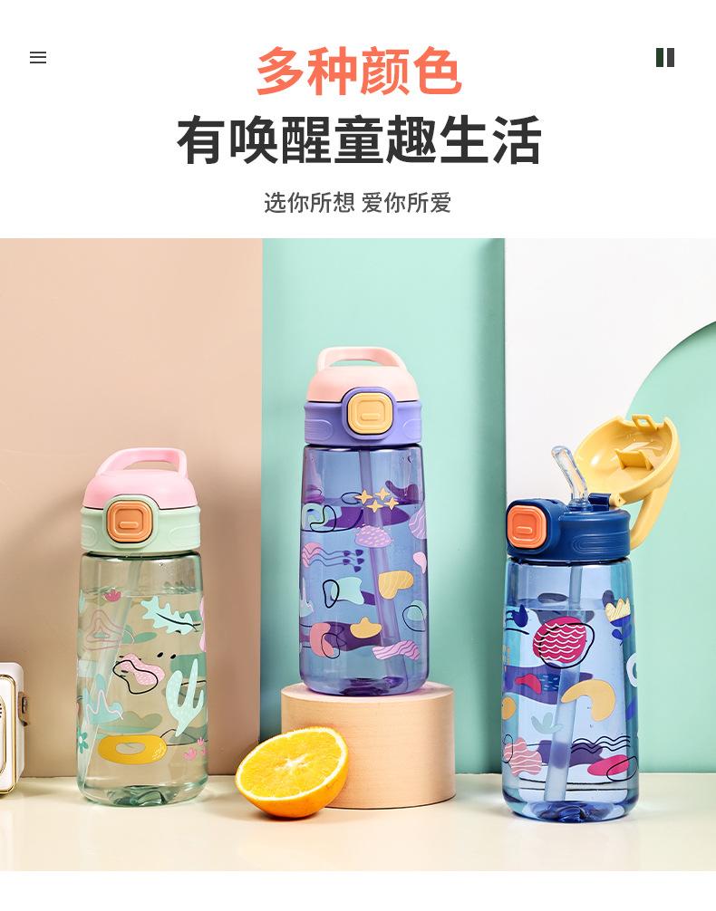 Vaso de Agua de Plástico para Niños de Dibujos Animados de Verano, Vaso con Pajita para Estudiantes, Portátil para Exteriores, Vaso Especial para la Escuela 550ml