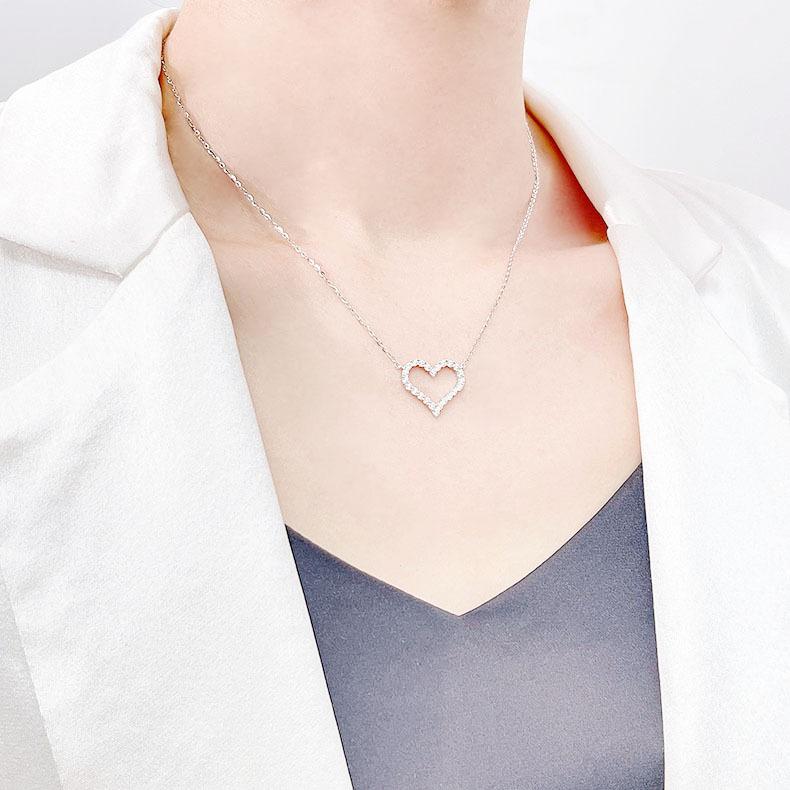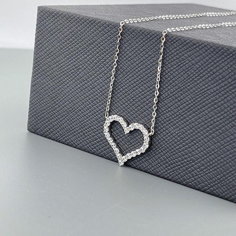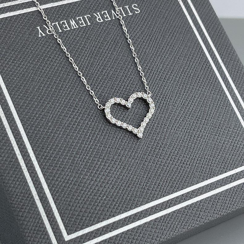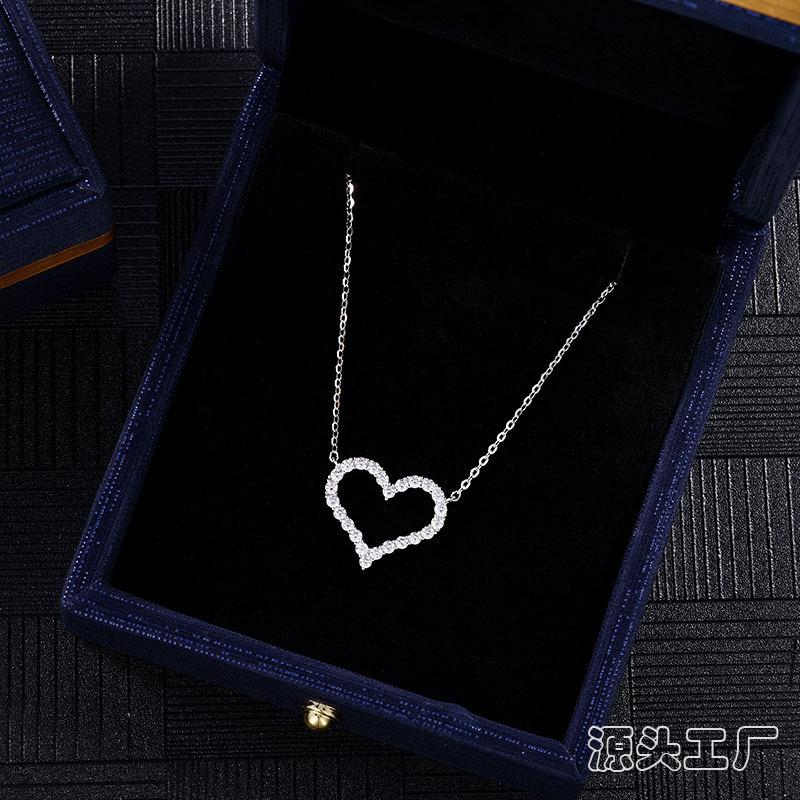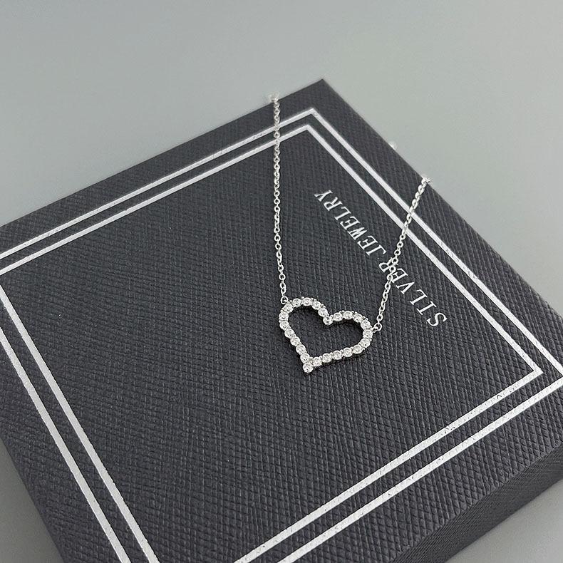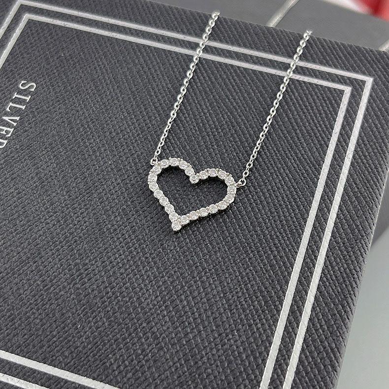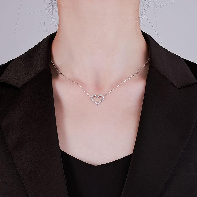 Collar de amor con diamantes huecos de lujo ligero, de plata de ley 925, para mujer, con forma de corazón, moderno, sencillo y combinable, regalo de San Valentín.
