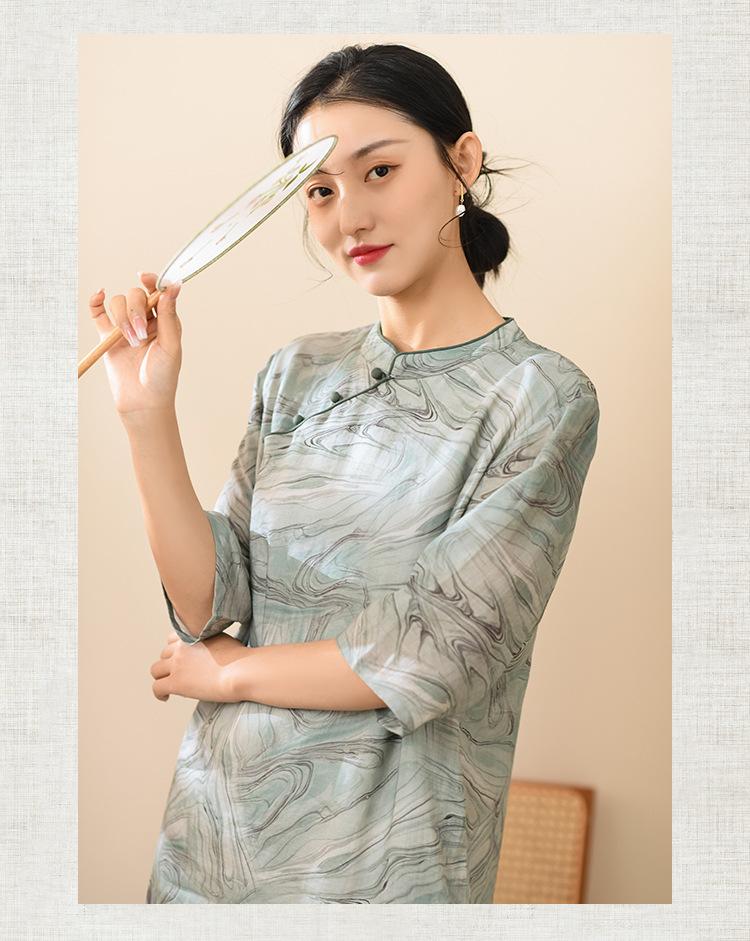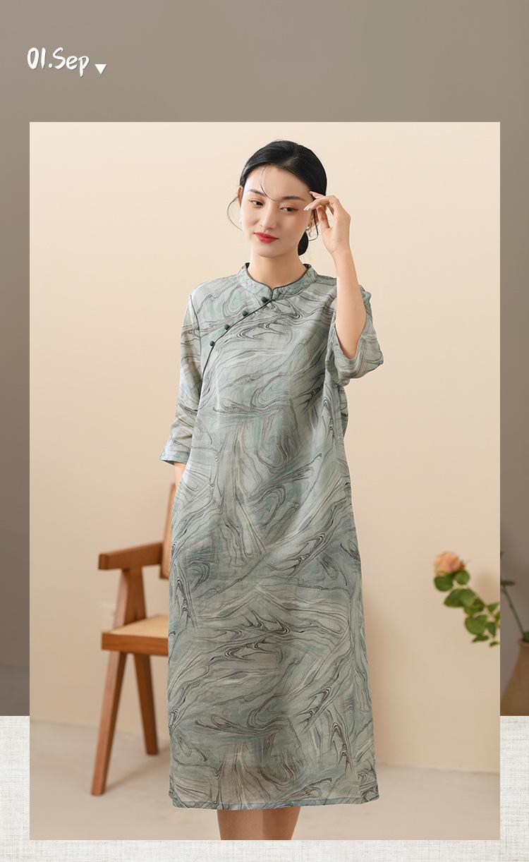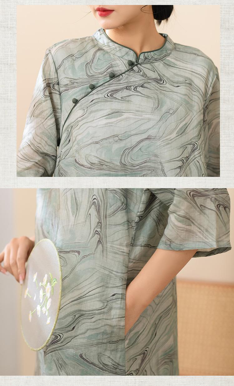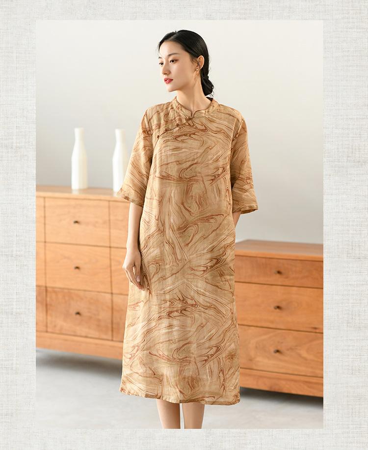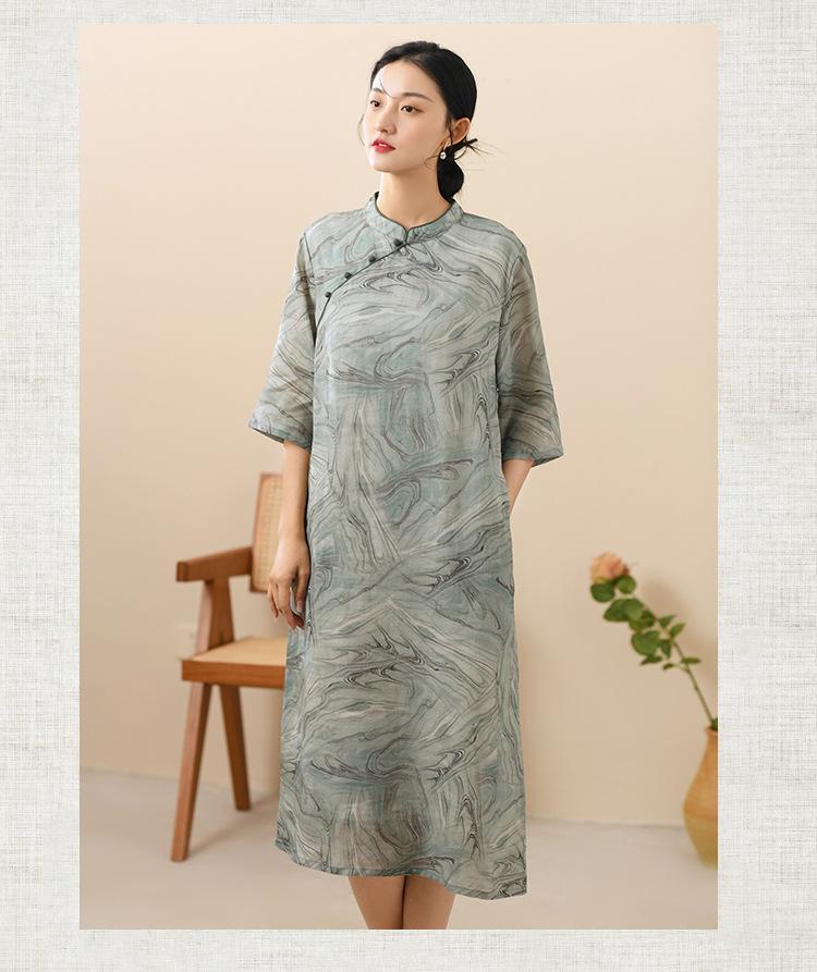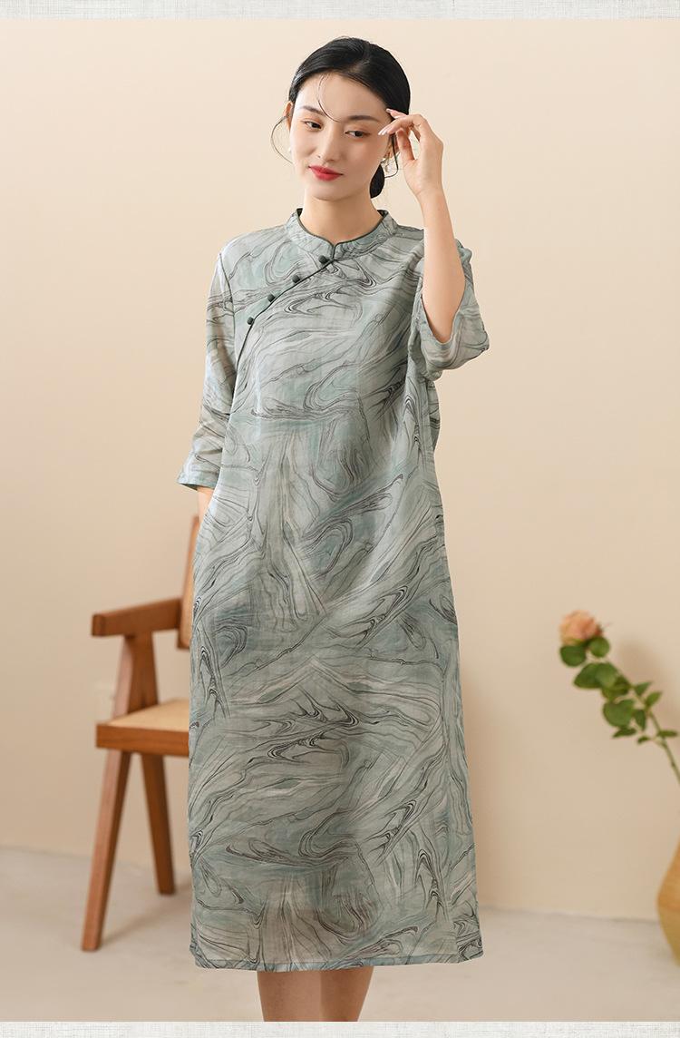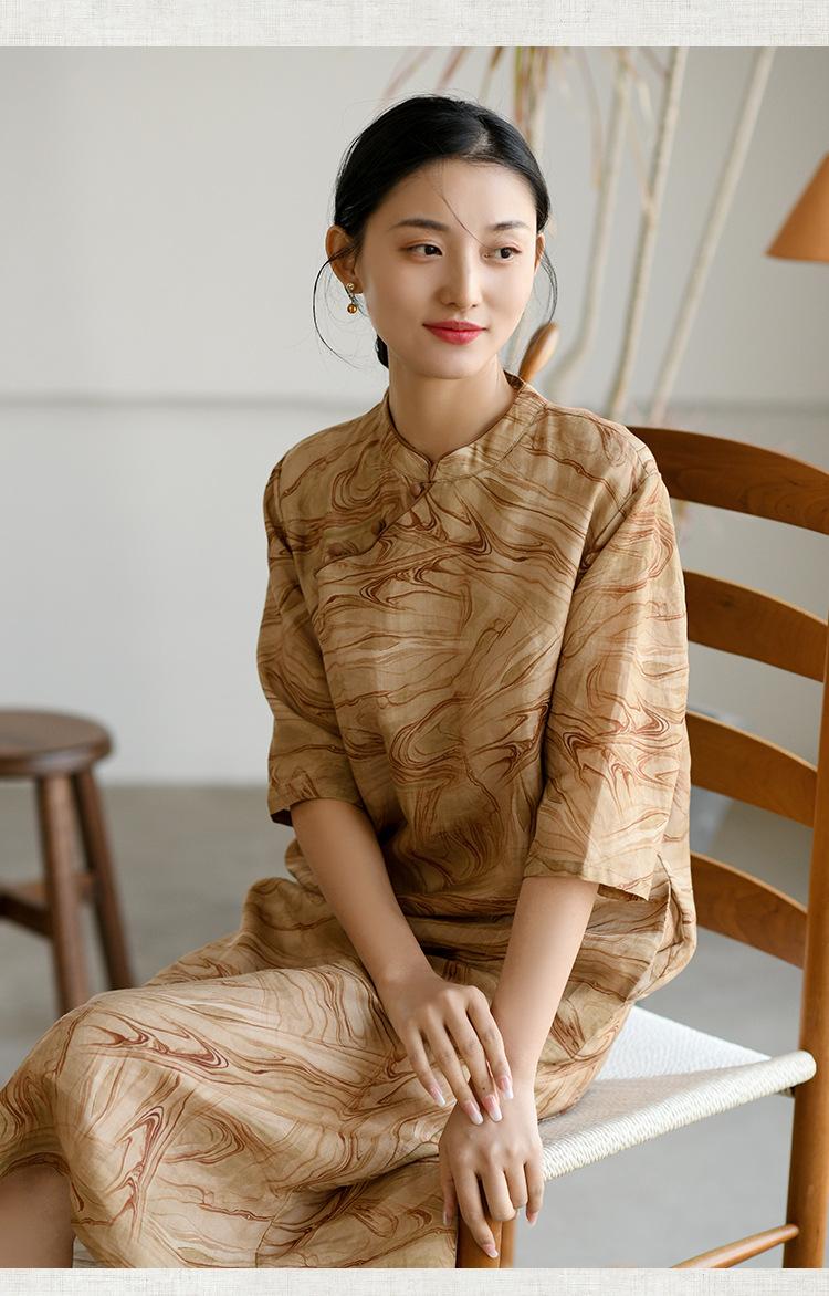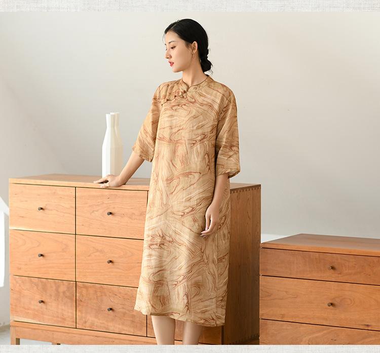 Vestido retro de algodón y lino para mujer, nuevo vestido de primavera y verano, nuevo vestido cheongsam modificado con ramio chino, estilo nacional, ropa de arte del té al por mayor