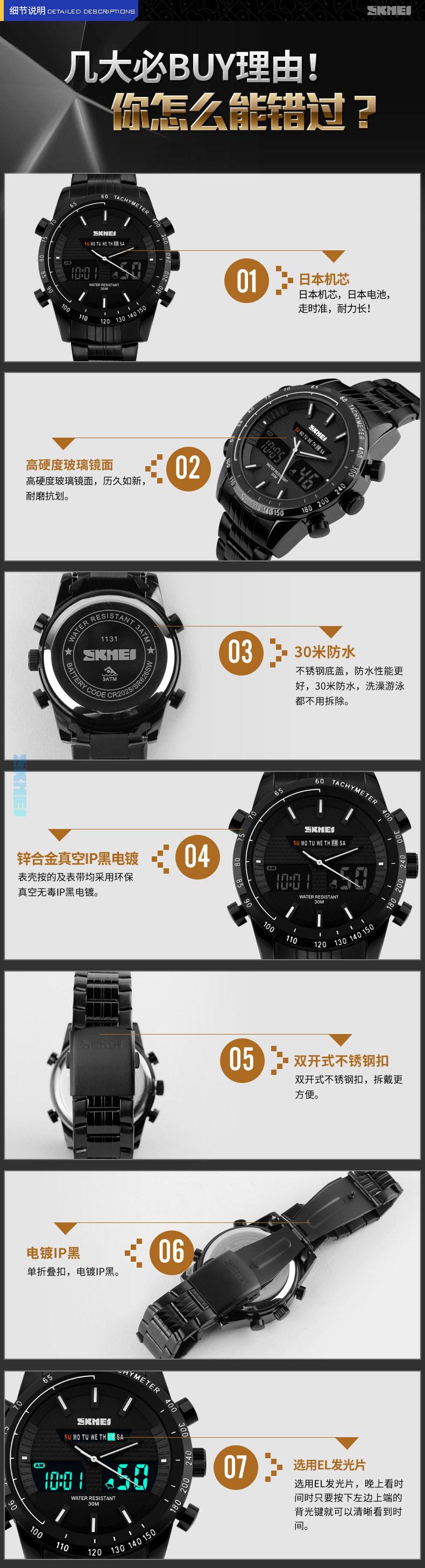| Material | Galvanoplastia IP negroCaja de aleación de zinc, correa de aleación de zinc IP negro galvanizado, espejo de cristal engrosado y endurecido, tapa inferior de acero inoxidable, hebilla de acero inoxidable |
