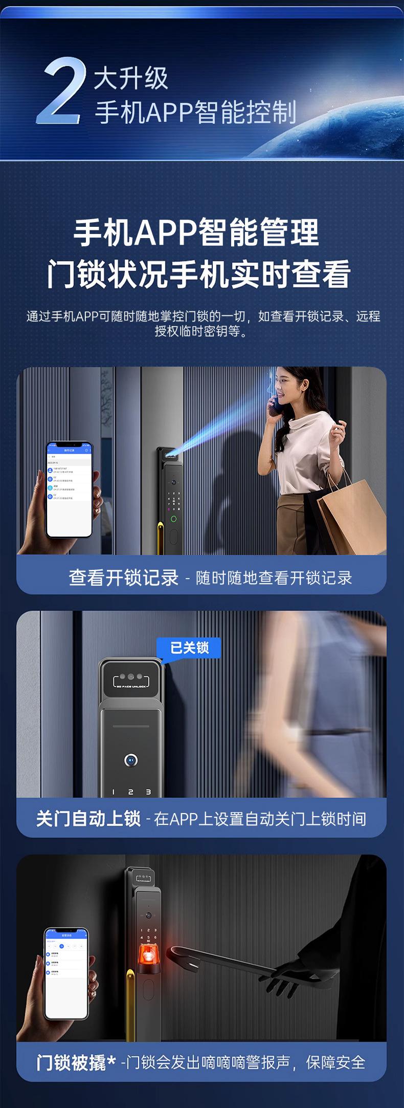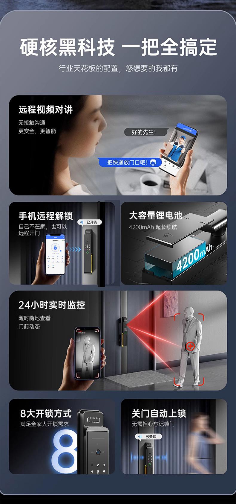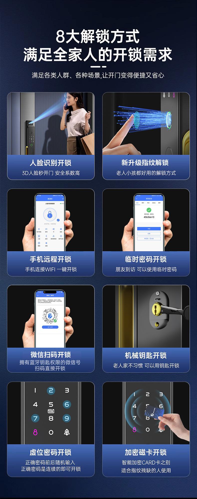 Fingerprint, Password, With key, face recognition, Remote Unlock