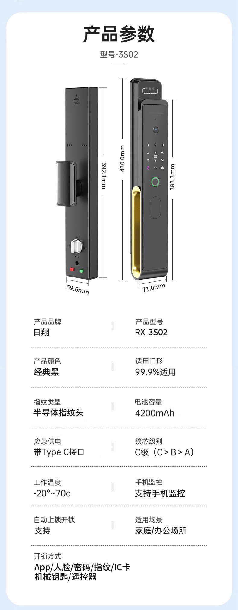 3S02 Face-Including 24*240 Lock Body-Remote Intercom Monitoring, 3S02 Face-with 30*240 Cylindrical Lock-Remote...