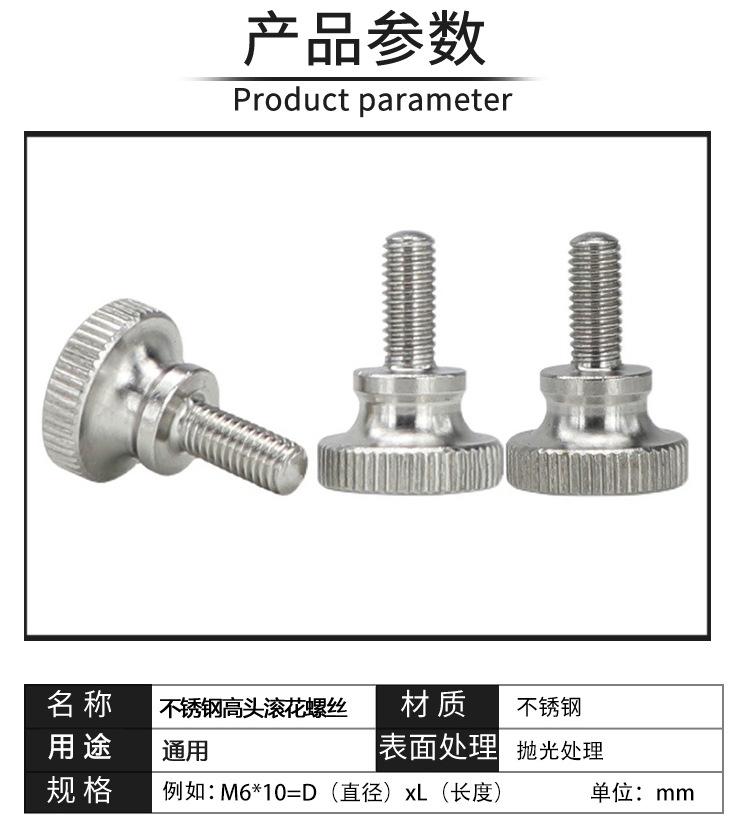Tornillos de mano moleteados de cabeza alta de acero inoxidable 304 Tornillos de mano de ajuste Tornillos