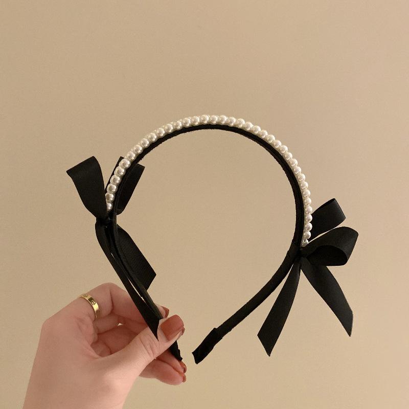 Diadema de Lazo de Perlas de Estilo Antiguo para Mujer en Verano, Diadema de Presión para el Cabello de Estilo Francés Retro de Alta Gama, Tocado Coreano para Mujer