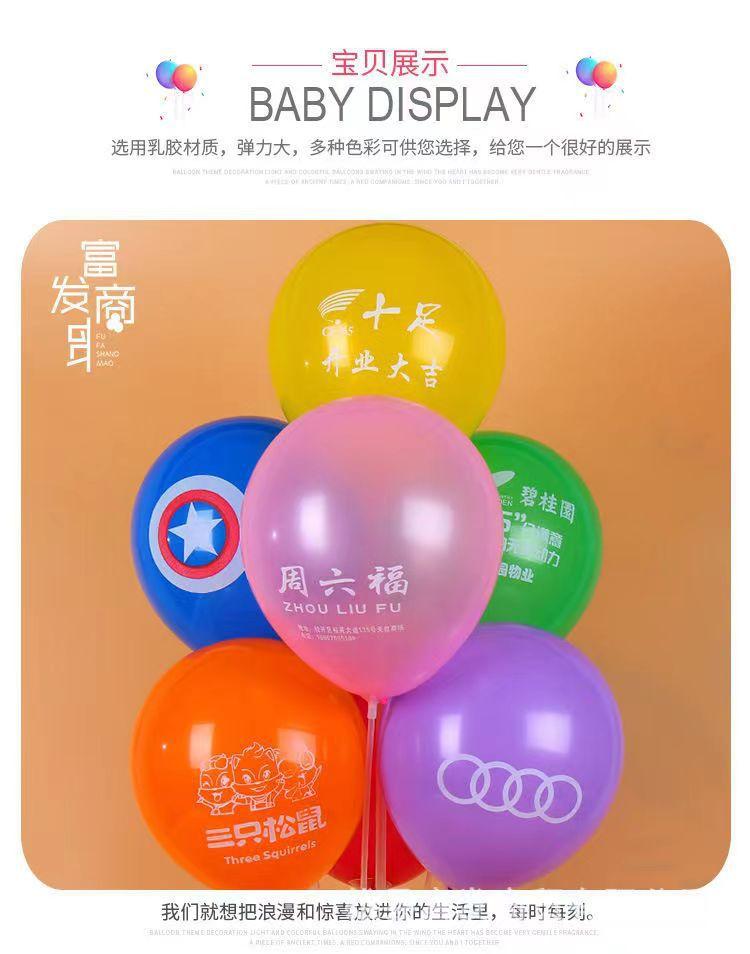 Globo publicitario personalizado, globo redondo de látex de 10 pulgadas con apertura que permite imprimir el logotipo, el patrón y el código bidimensional.