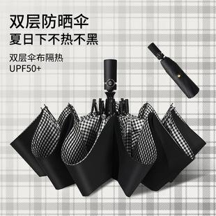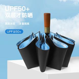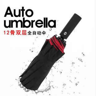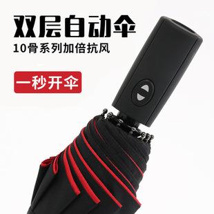 Paraguas inverso de doble capa transfronterizo, nuevo paraguas totalmente automático con banda reflectante, de goma negra, antiparaguas, grande y doble.