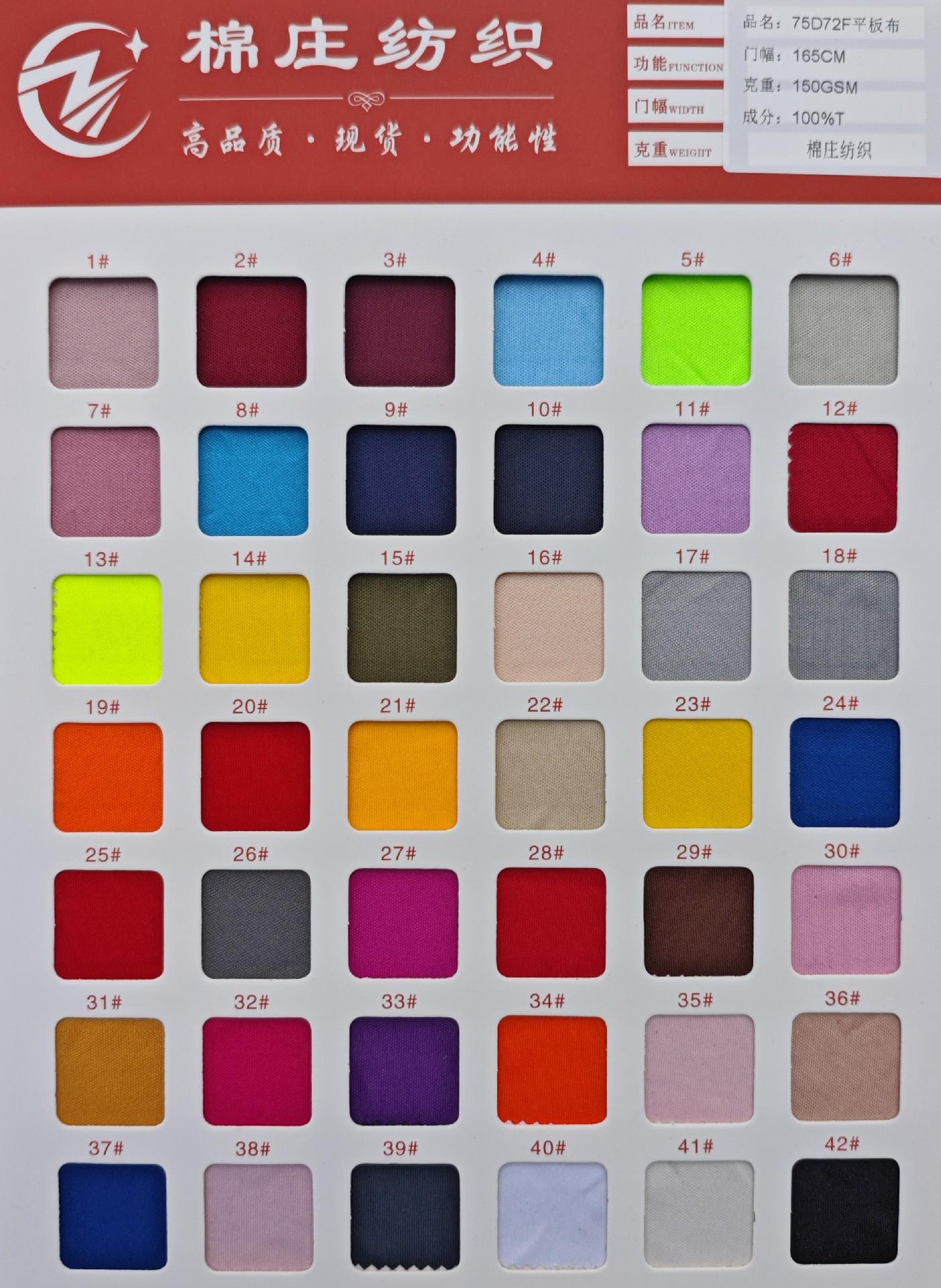 En stock, tela plana 75D de 150 g, de doble cara, de buena calidad, totalmente de poliéster, tejido de punto, tejido de forro compuesto.