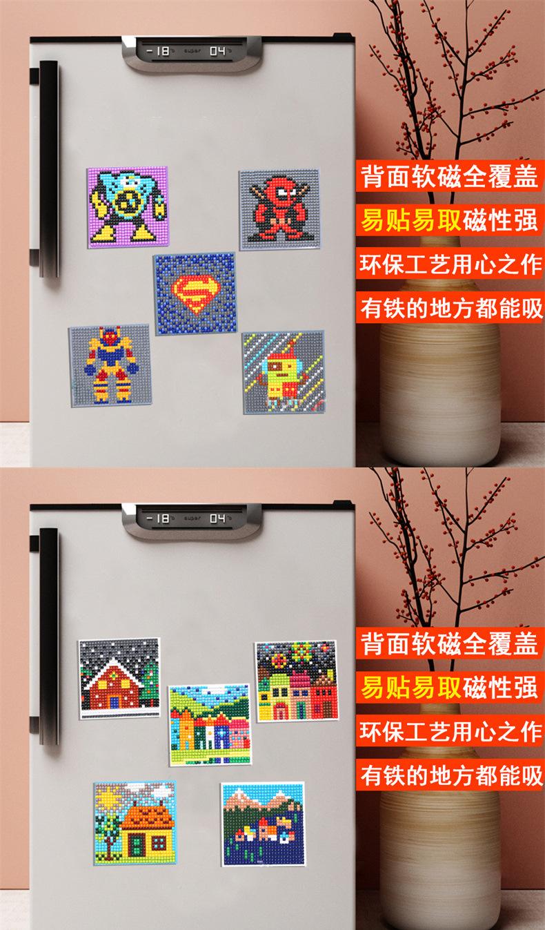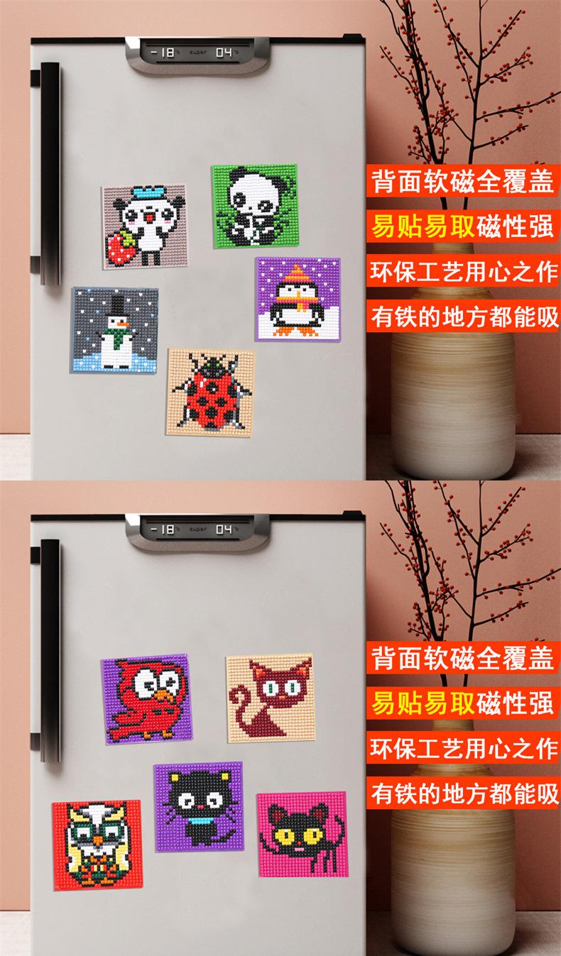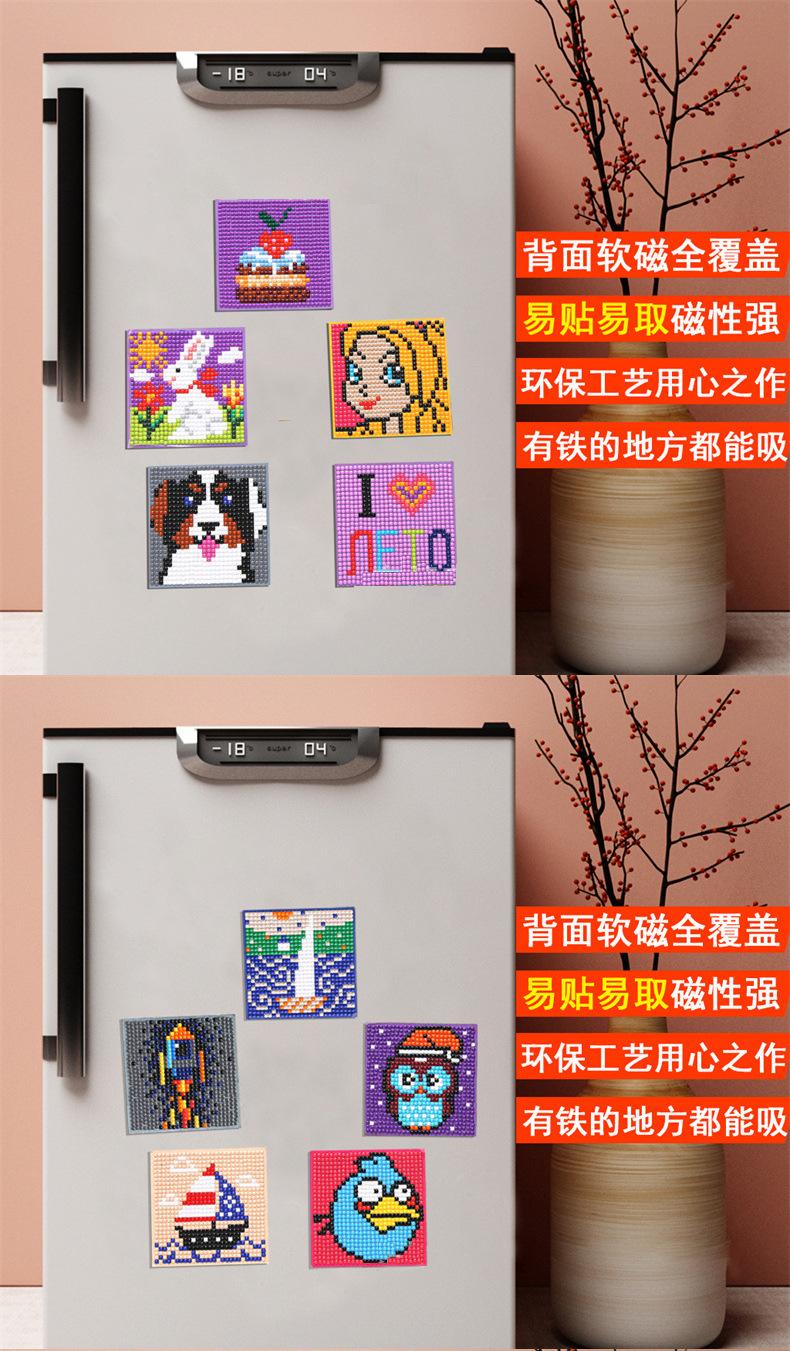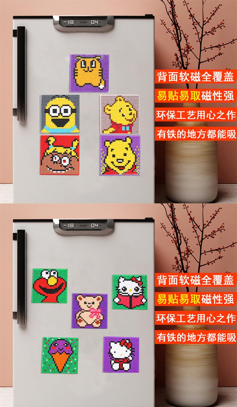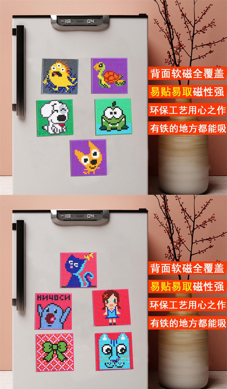 Calcomanías Magnéticas de Dibujos Animados 5D para Refrigerador Pintura de Diamantes Juguetes Educativos para Niños Calcomanías DIY Hechas a Mano Pinturas Decorativas Creatividad para el Hogar