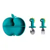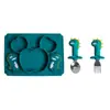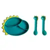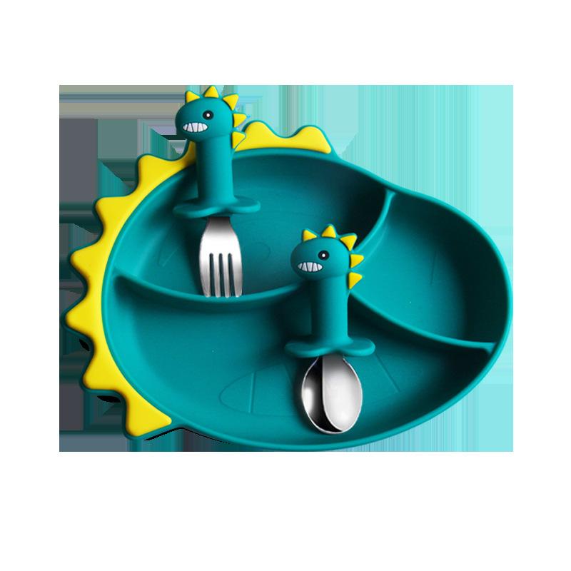 Dark green: dinosaur dinner plate + dinosaur silicone short fork and spoon