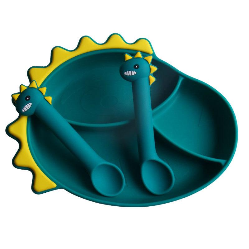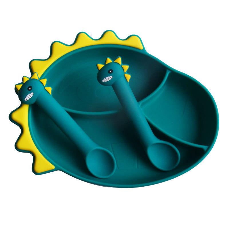 Dark green: dinosaur dinner plate + dinosaur silicone spoon