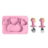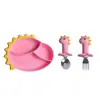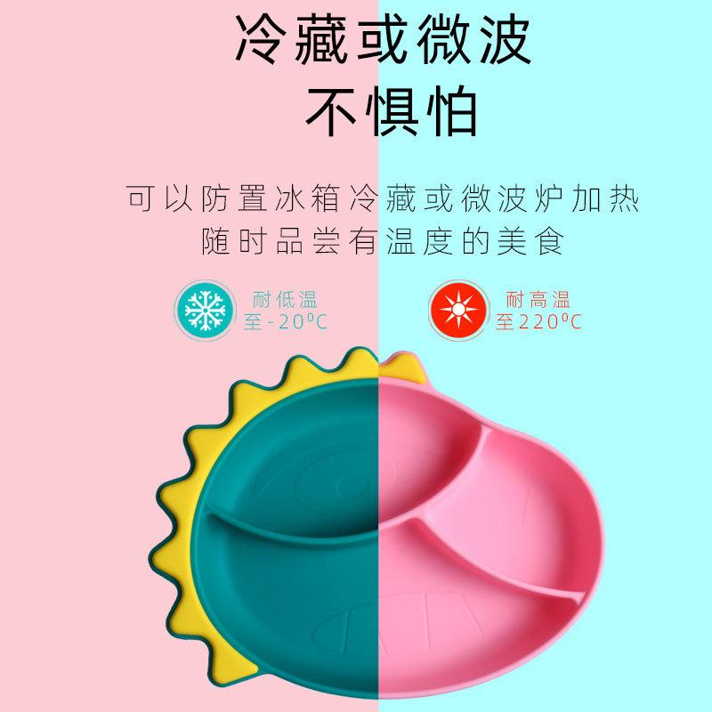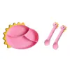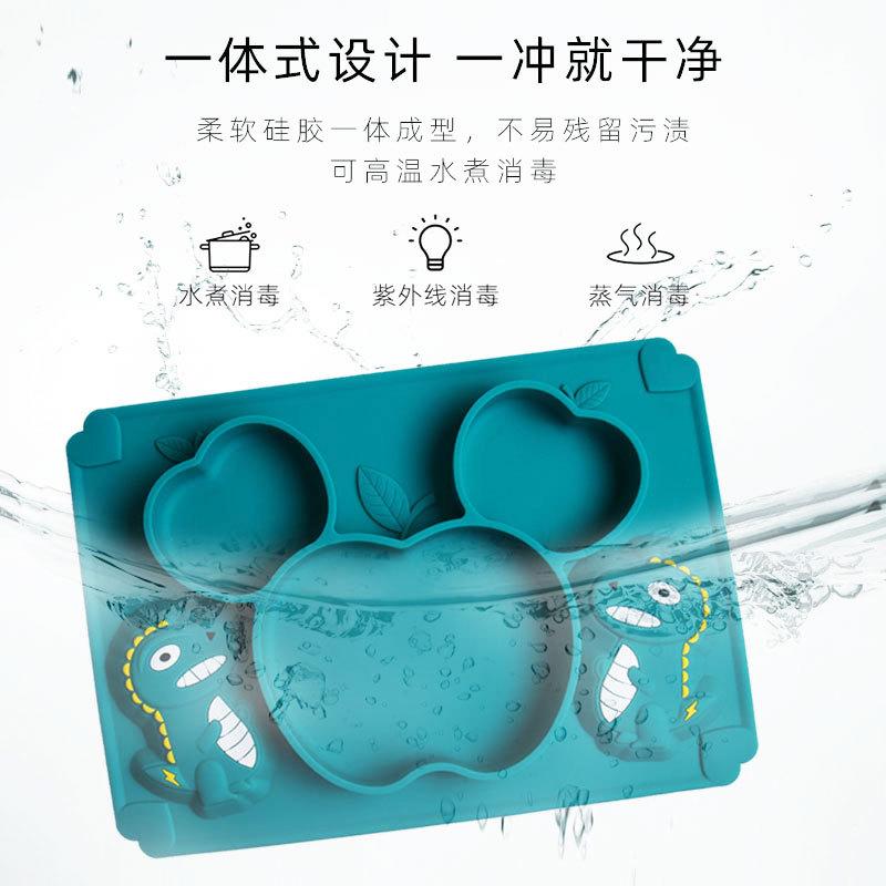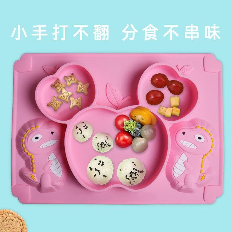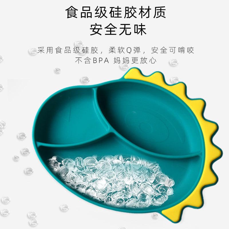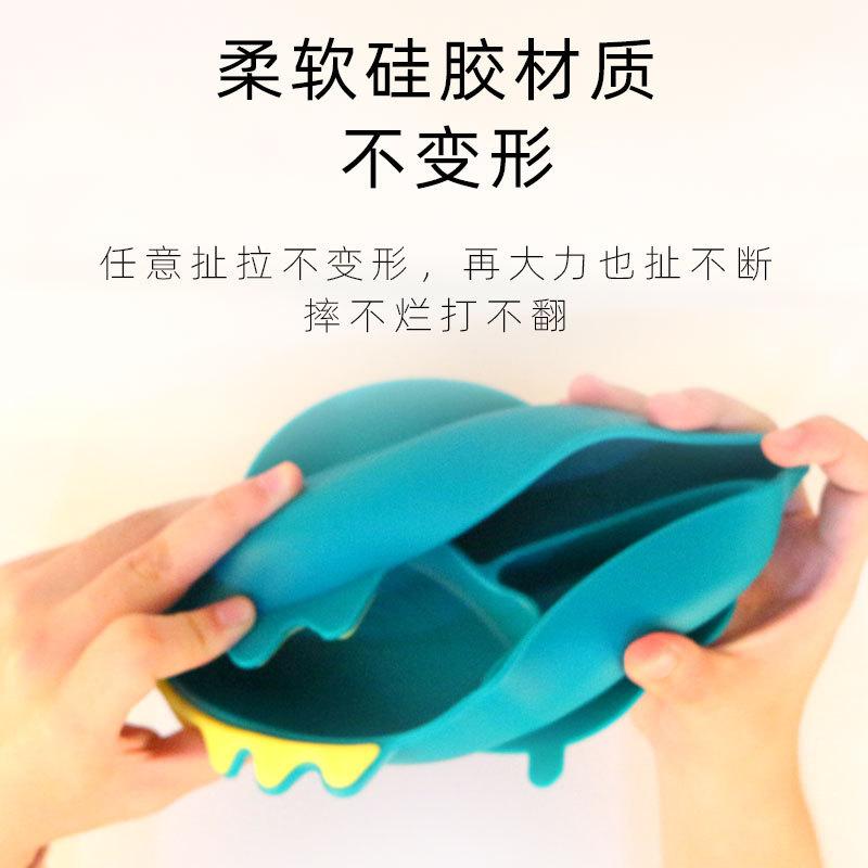 Plato de Cena de Silicona de Venta Caliente Transfronteriza Grado Alimenticio para Bebés Tazón con Ventosa Compartimento Integrado Juego de Vajilla para Niños al por Mayor