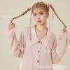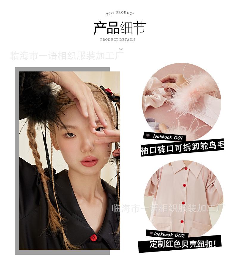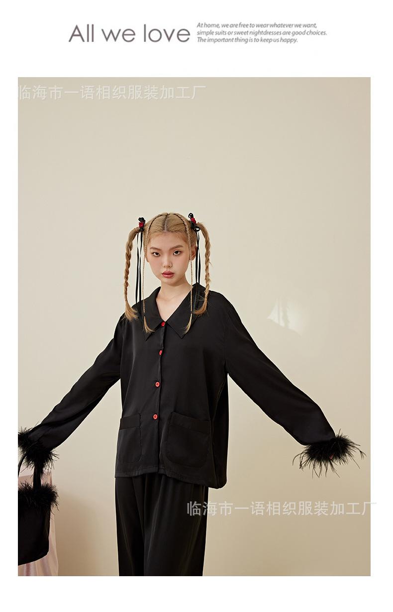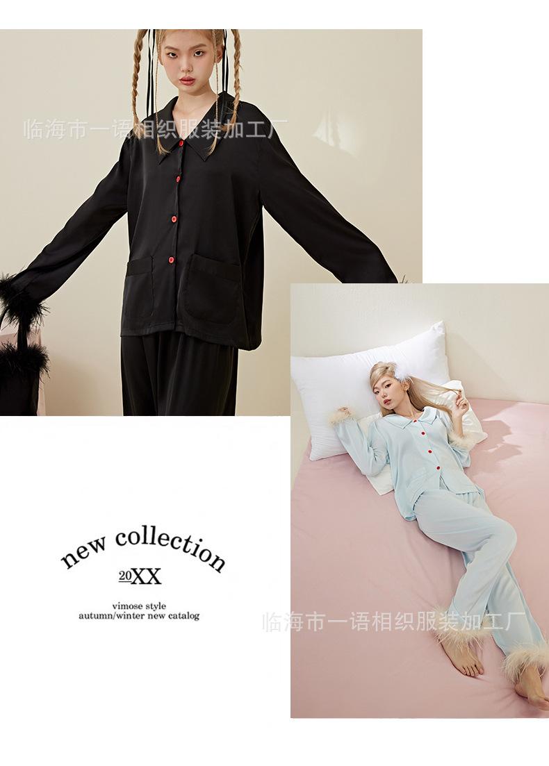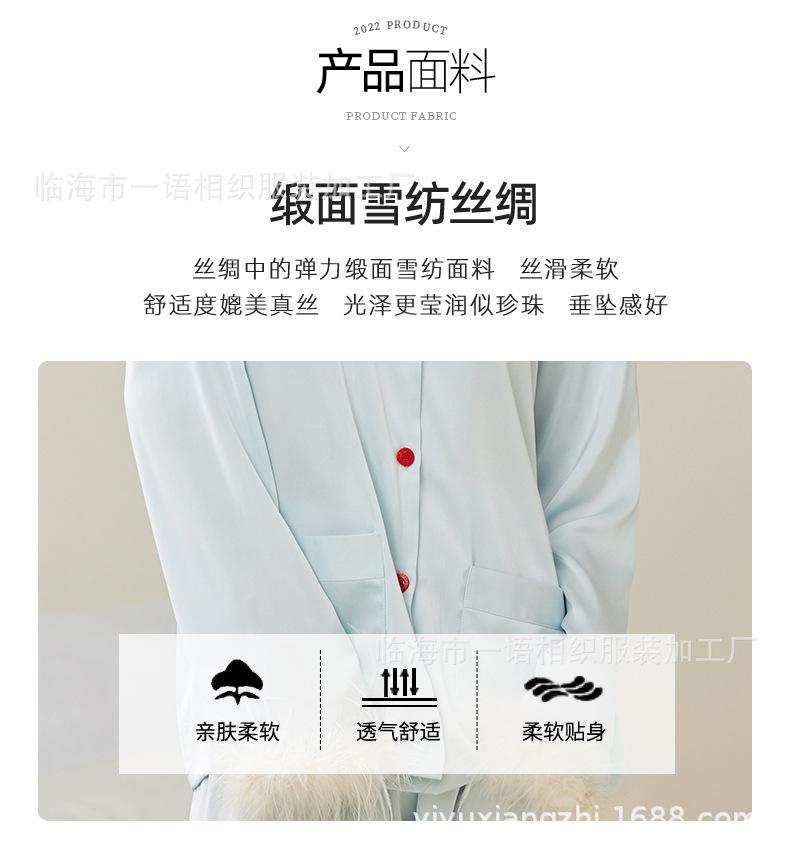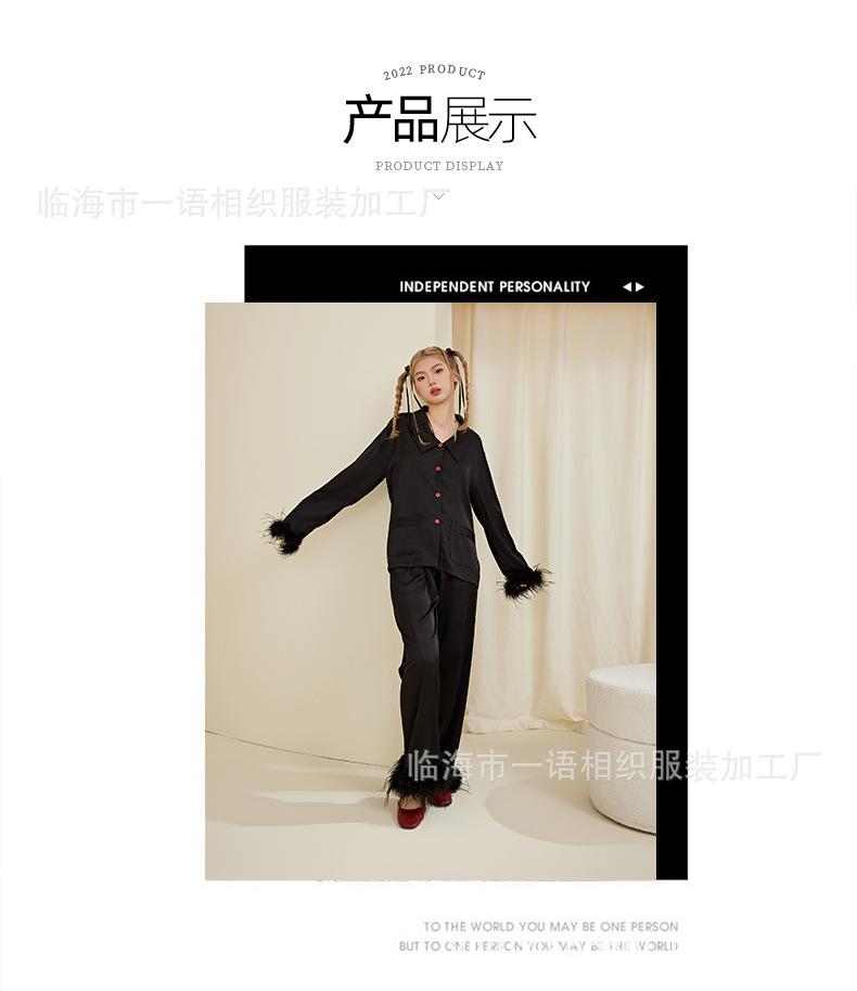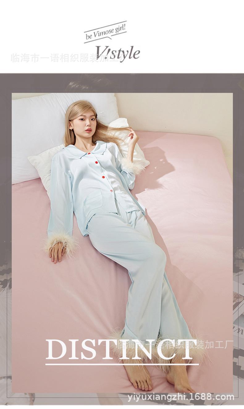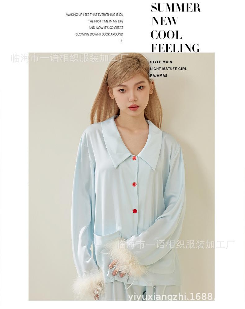 Primavera Nuevo Pijama de Seda Imitación Pluma Cuello Cuadrado para Mujer Estilo Hada Solapa Delgado Conjunto de Ropa para el Hogar para Mujer Venta al por Mayor